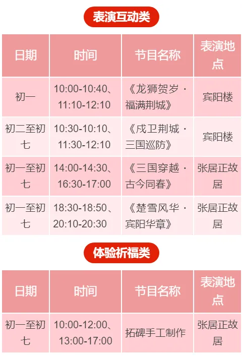 5. 其他:部分活动可能存在调整,请以现场公告为准。最终解释权归荆州古城旅游历史文化旅游区所有。