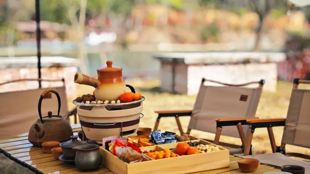 碳炉1个,无烟果木碳,茶叶,茶具1套,(景区泉水自取),开水壶,蛋卷桌,折叠椅,其他水果小零食(以现场为准)。
