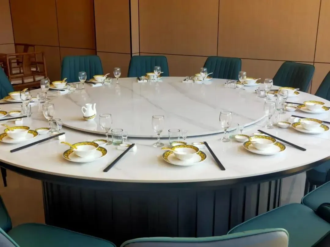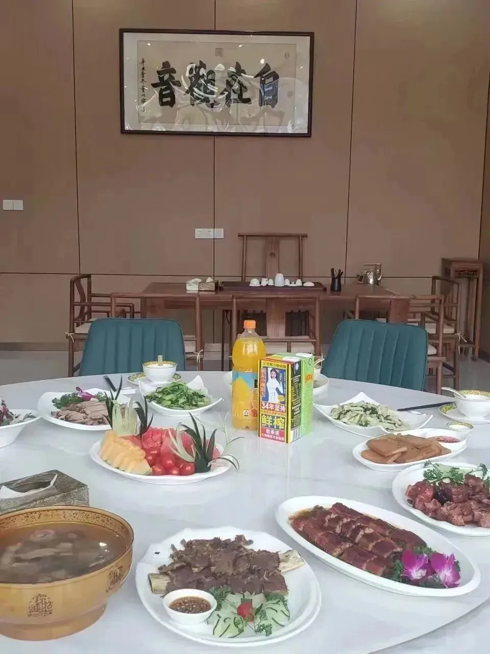 幸福庄园餐厅可容纳千人用餐,并有豪华包厢可供选择,厨房按照星级酒店标准建设,在这里用餐,食物美味,菜品多样,安全安心。