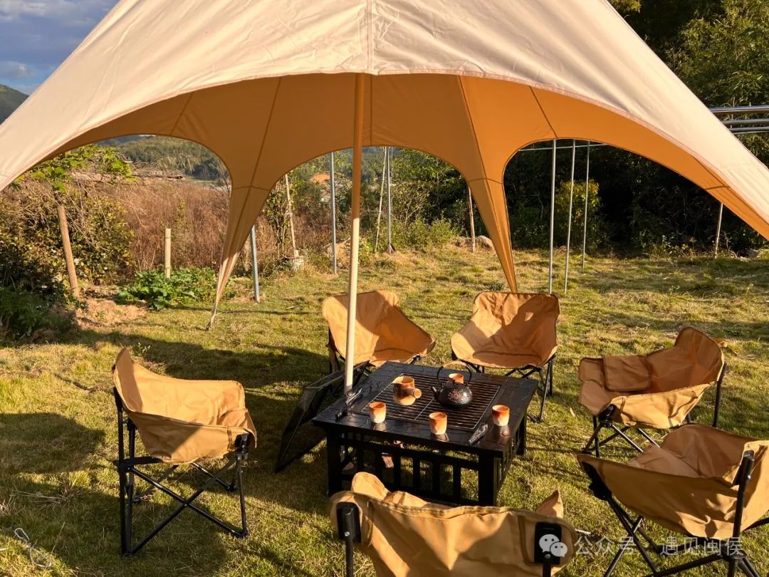 午后,享受天幕下围炉煮茶的惬意