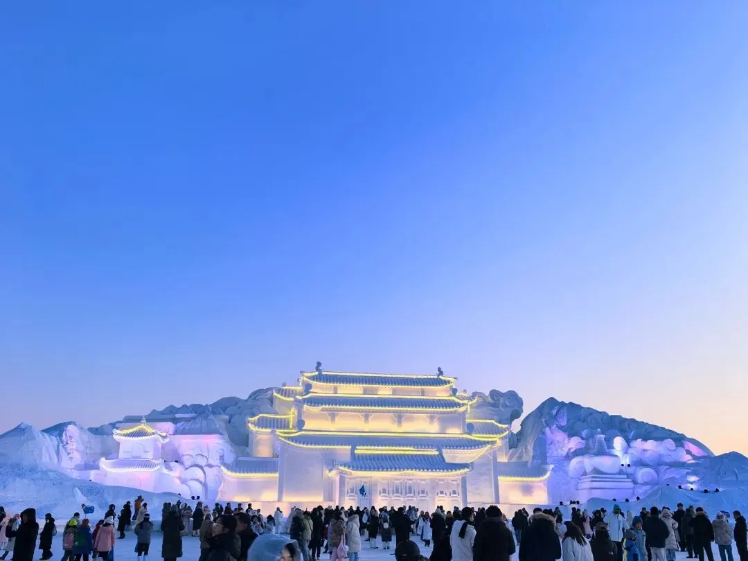 冰雪大世界将东方楼宇的写意与西方童话的浪漫完美融合,已成为冬季必打卡的网红地标。