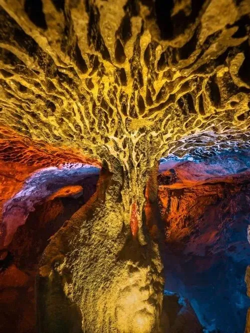 赏罢繁花,探秘“华东第一洞”龙硿洞,在恒温18℃的地下宫殿中躲避寒意,感受时光雕琢的地质奇观。作为国家4A级旅游景区,洞中有山、山中有洞,暗河泛舟的体验堪称新年探险的独特记忆。三亿年前形成的喀斯特地貌震撼人心——40米高的龙宫大厅如水晶宫殿、30米长的“玉龙盘柱”石柱见证岁月沉淀、“白龙马”开启马年“龙马精神”的元气、200米地下暗河泛舟时,船灯映照水面倒影,宛如闯入《地心历险记》片场。