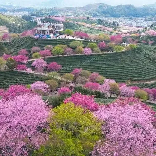 漳平永福樱花茶旅景区・茶垄樱雪,跨城追春