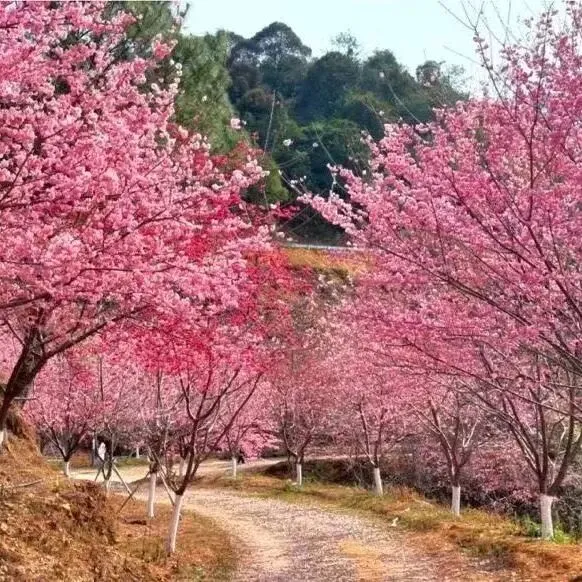 樱花烂漫,景色满园。预计2月中旬满园樱花俏立枝头,纯洁的宝蓝色天空,远山的墨绿色淡影,层峦的浅绿色梯田,浓烈的粉红色樱花交织在一起,共同绘成一幅令人陶醉的画卷。