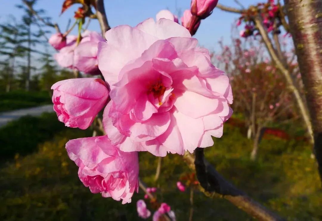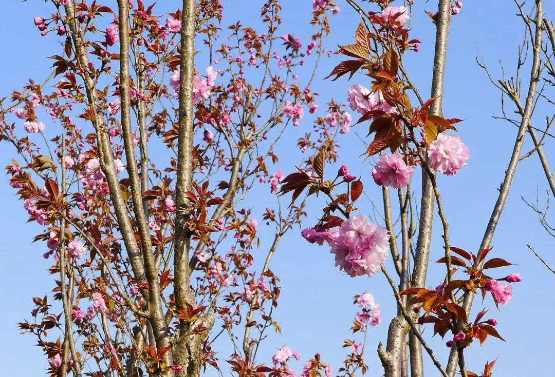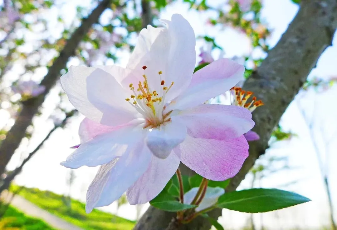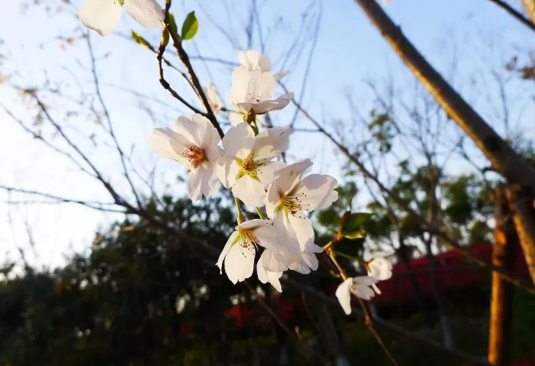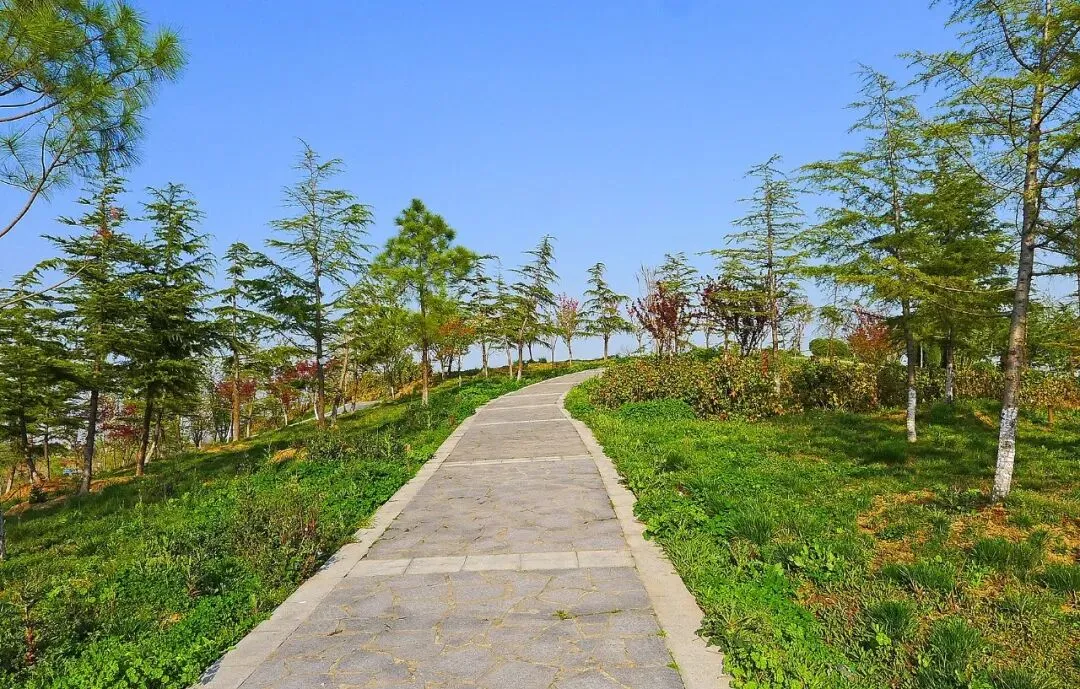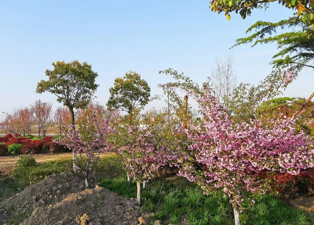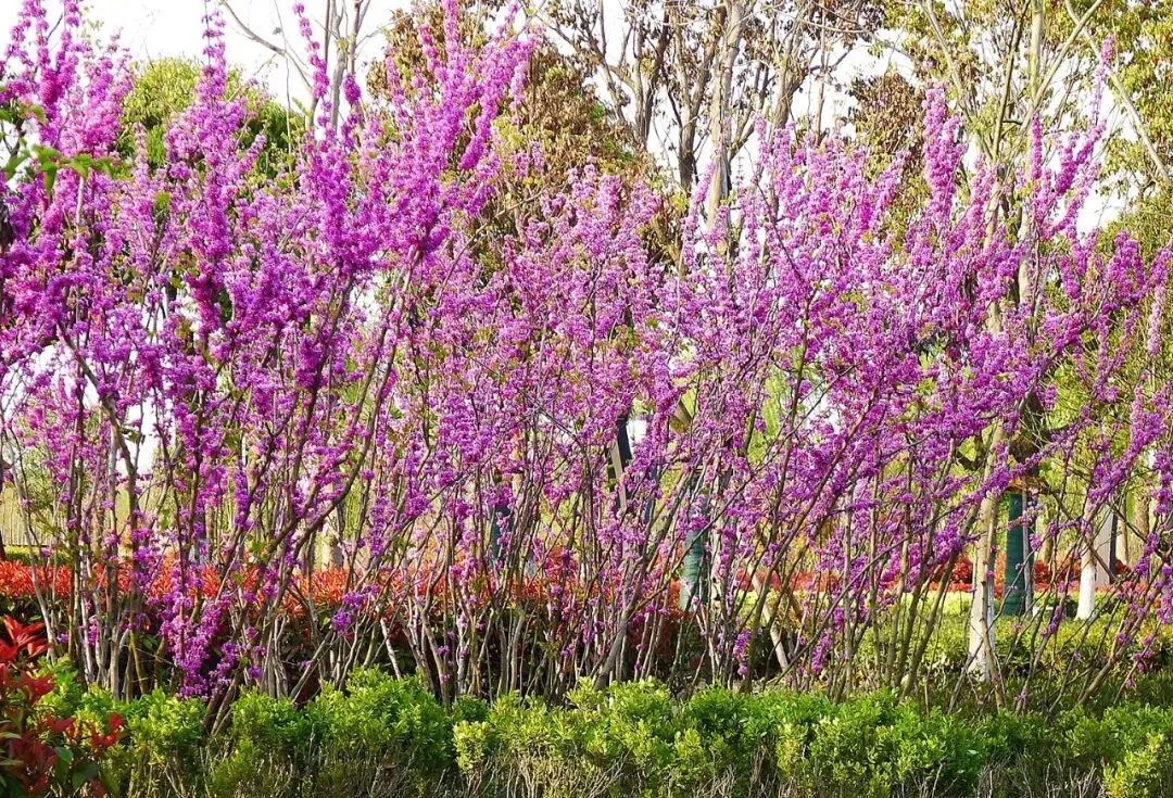 大洋湾花池里的花有黄的、红的、紫的、粉的,色彩纷呈。远处水面腾起水雾,树木显得朦朦胧胧。在小径上散步,可欣赏花池里的花,也可看看远处的绿树,空间广阔,令人心旷神怡。