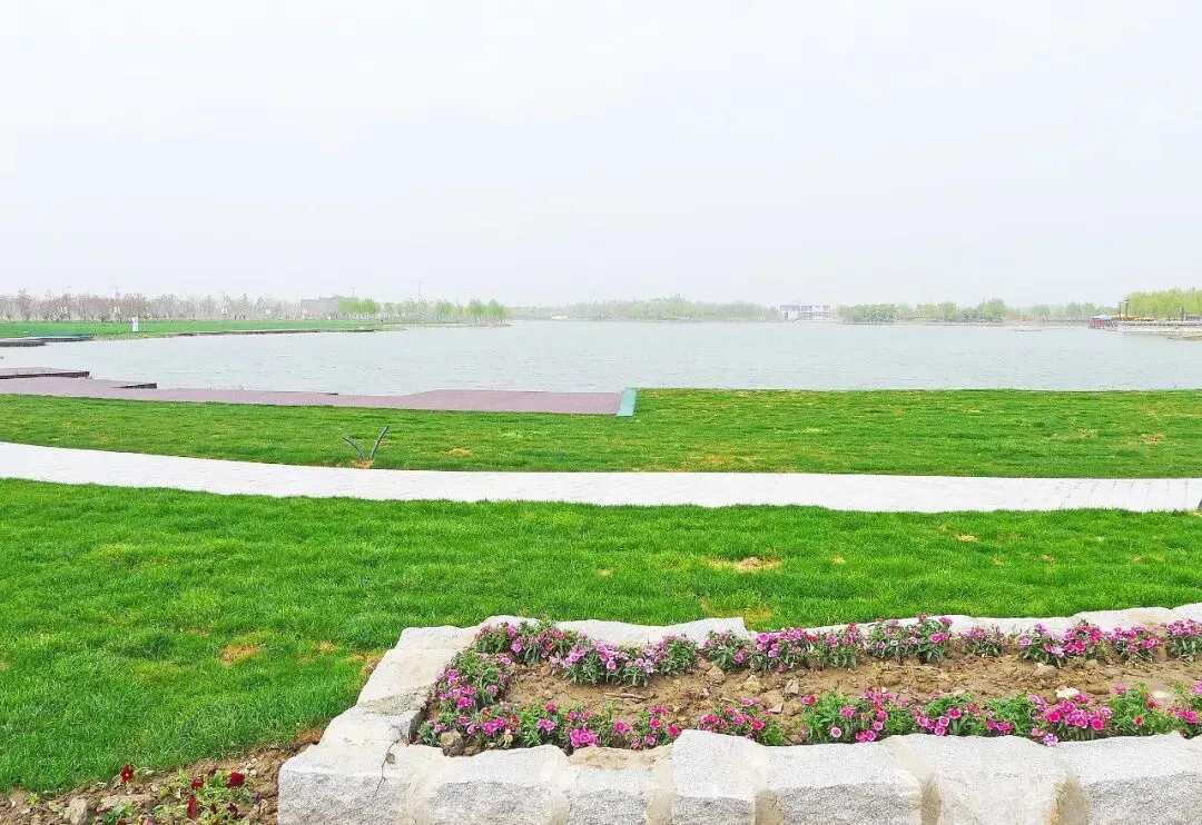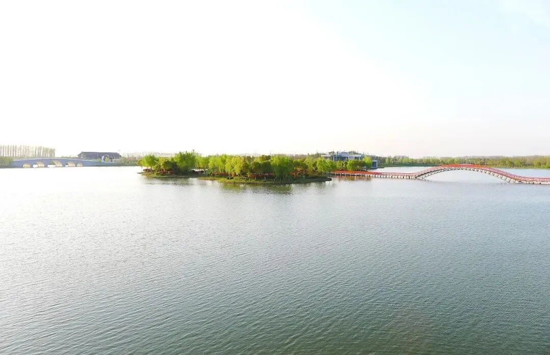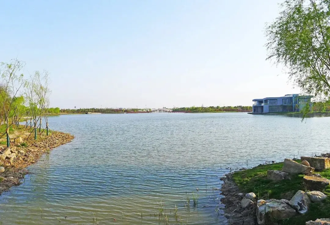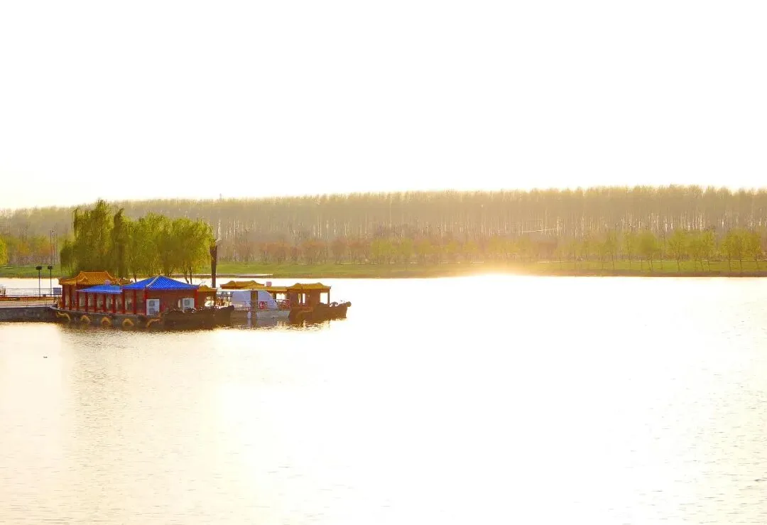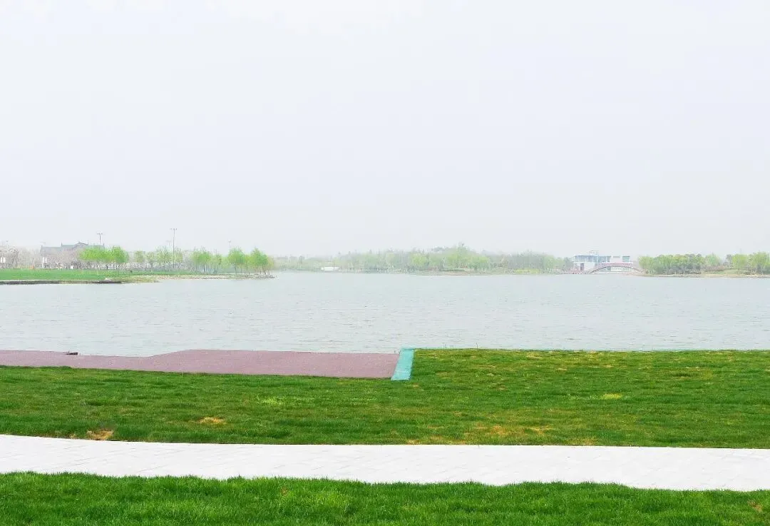 大洋湾内的塑胶跑道宽阔而平坦,早晨傍晚,游客或附近的居民,到这儿散步或跑步,草绿绿的,空气清新的,一切静谧安好。微风吹来,水波粼粼,游船如梭,绿树成荫,好一派平原湿地风光!