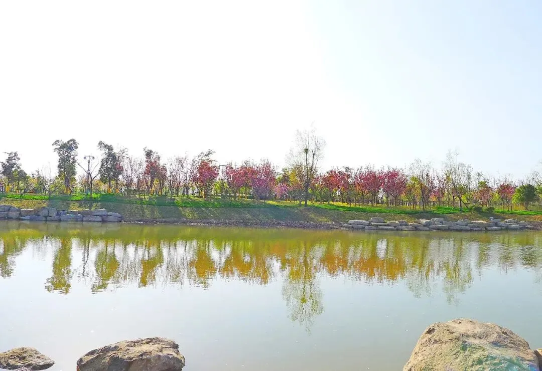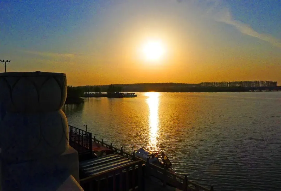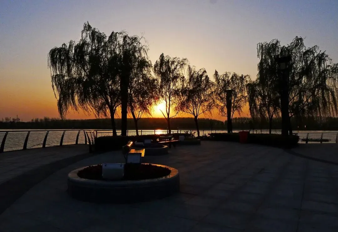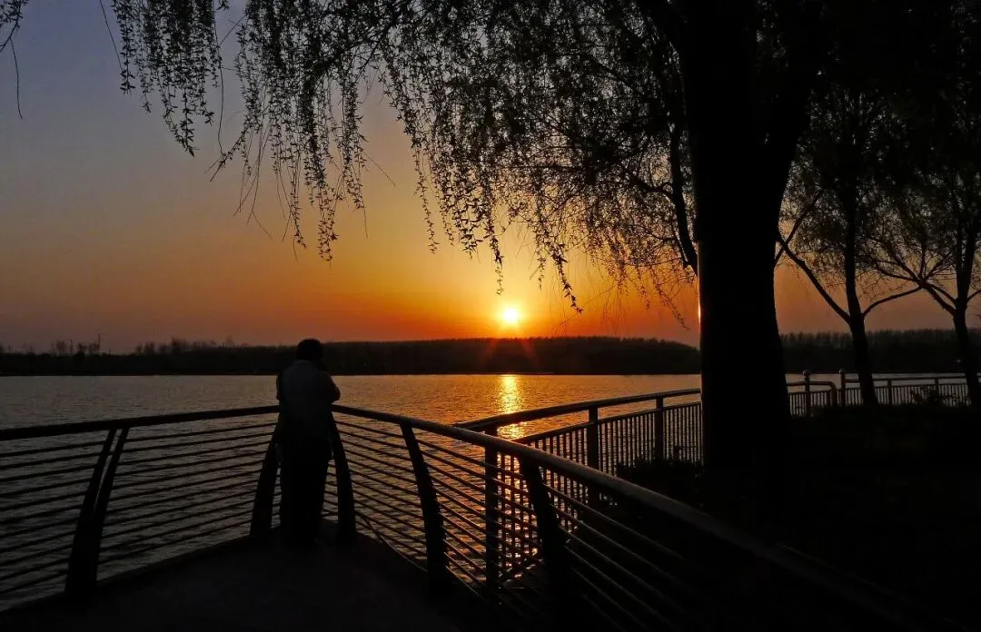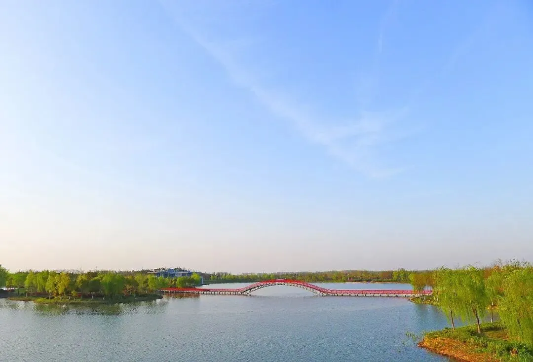 大洋湾内的塑胶跑道宽阔而平坦,早晨傍晚,游客或附近的居民,到这儿散步或跑步,草绿绿的,空气清新的,一切静谧安好。微风吹来,水波粼粼,游船如梭,绿树成荫,好一派平原湿地风光!