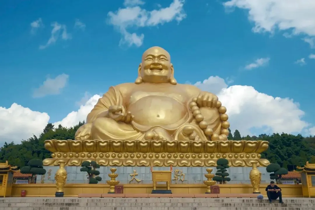 在亚洲最大弥勒佛像前祈福