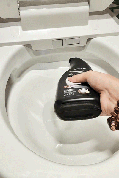 它的“懒人逻辑”很省事: 只需沿着边缘淋一圈,啫喱质地会牢牢挂在壁上。 等待60秒,污渍自动分解,水一冲就干干净净! 完全不用弯腰费力去刷。