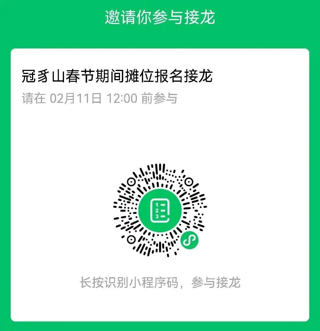 报名方式:通过指定小程序进行接龙报名,报名结束后,进行统一摇号以最终确认摊位。