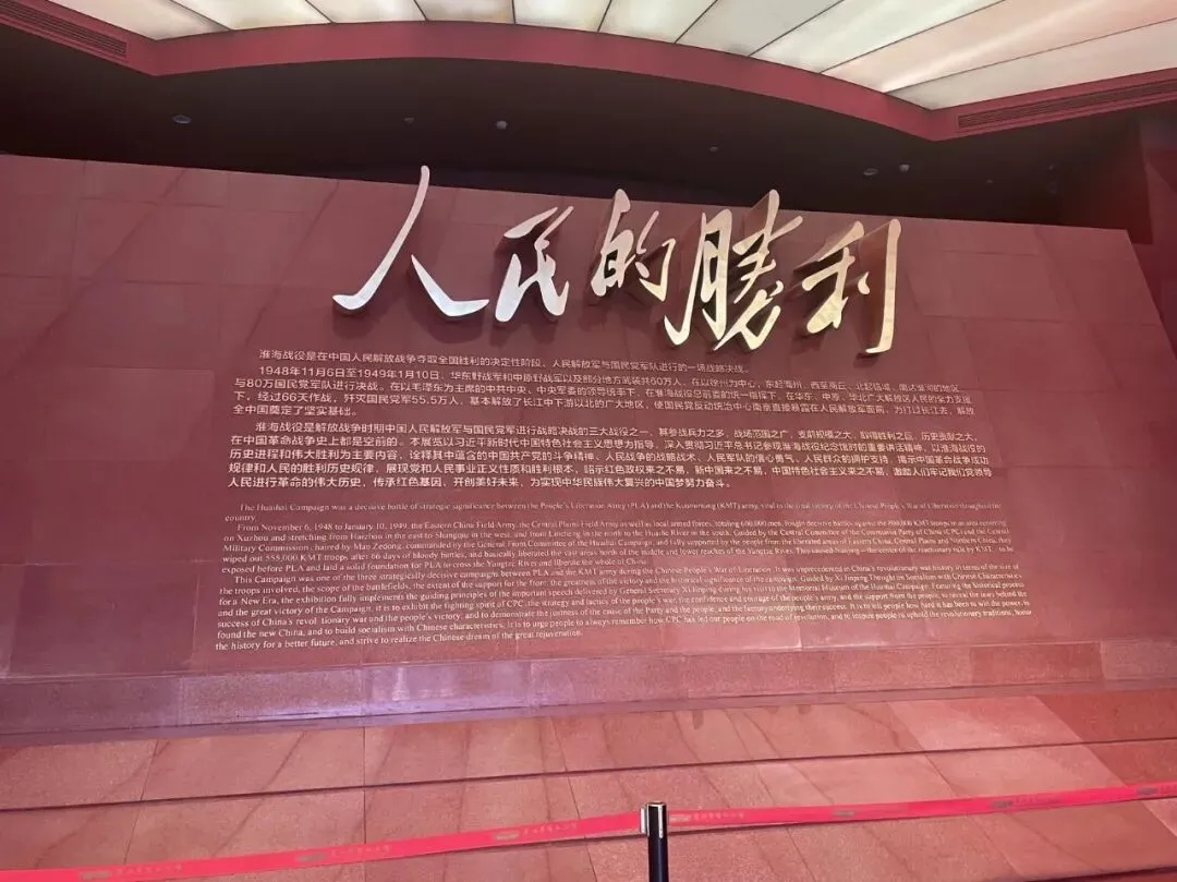 第二天上午,我们来到了淮海战役纪念馆。馆内有专门的人员讲解淮海战役的作战背景和作战过程,让我们更深入地了解那个阶段的历史。淮海战役是以少胜多的战役,非常需要智慧和勇气。作战的时机、信息差、团结一心都非常重要。作战武器相对落后,但是战士们的作战精神,比如说“没有桥腿就拿身体当桥腿”真的很让人动容。