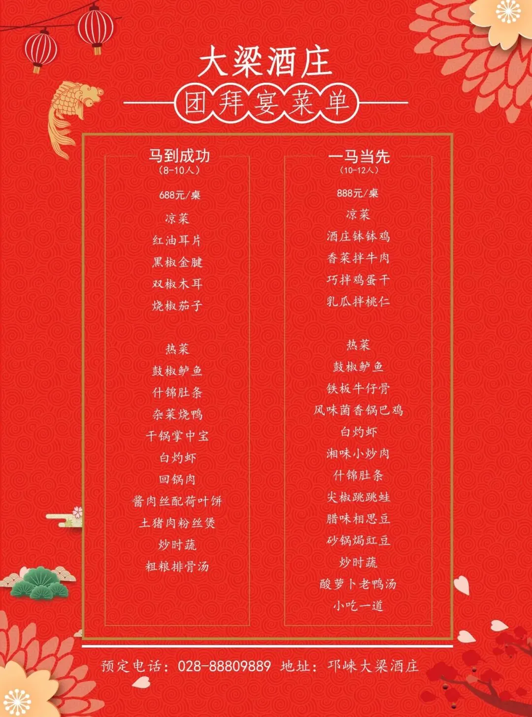 “马到成功宴”8---10位,套餐价888元,优惠价688元