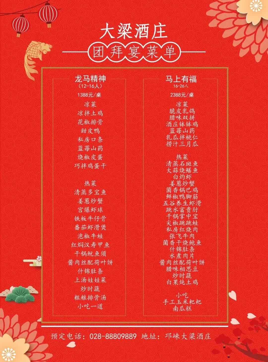 “龙马精神宴”12---16位,套餐价1588元,优惠价1388元
