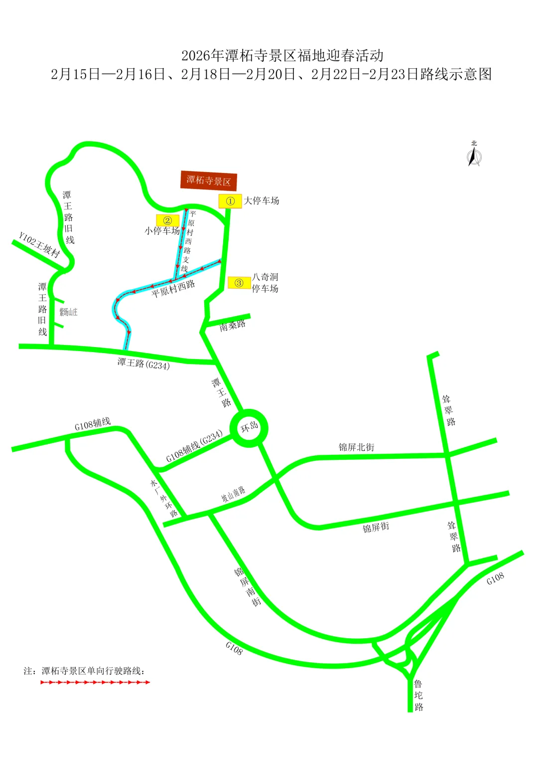 为确保2026年春节元宵节期间潭柘寺景区周边道路交通安全顺畅,根据道路交通安全法律法规的有关规定,决定对潭柘寺镇平原村西路、潭王路旧线等部分道路采取临时交通管理措施,具体如下: