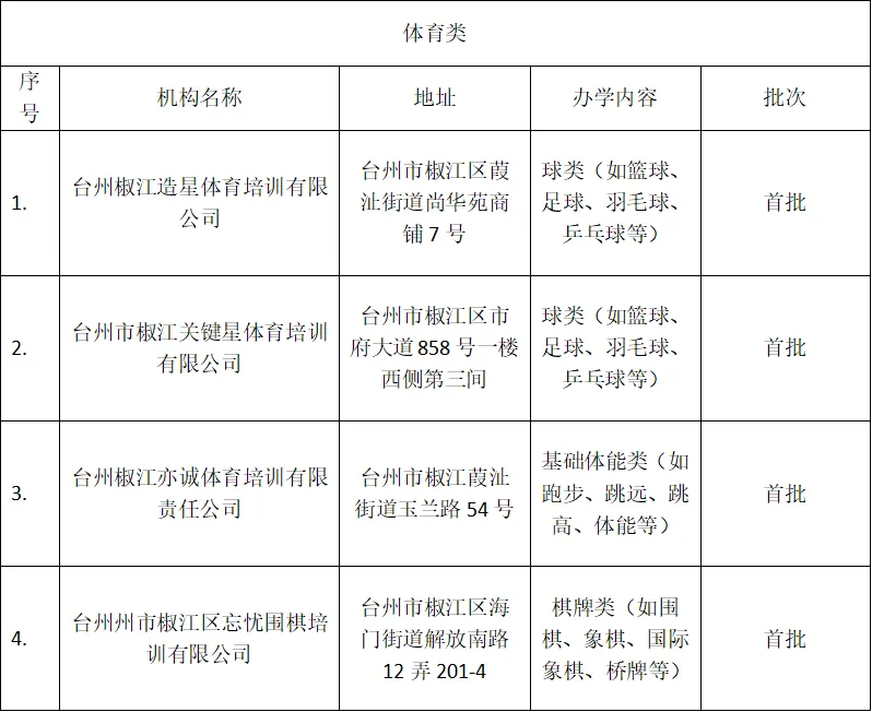 台州市椒江区文化和广电旅游体育局关于印发椒江区2026年艺体类校外培训机构的“白名单”