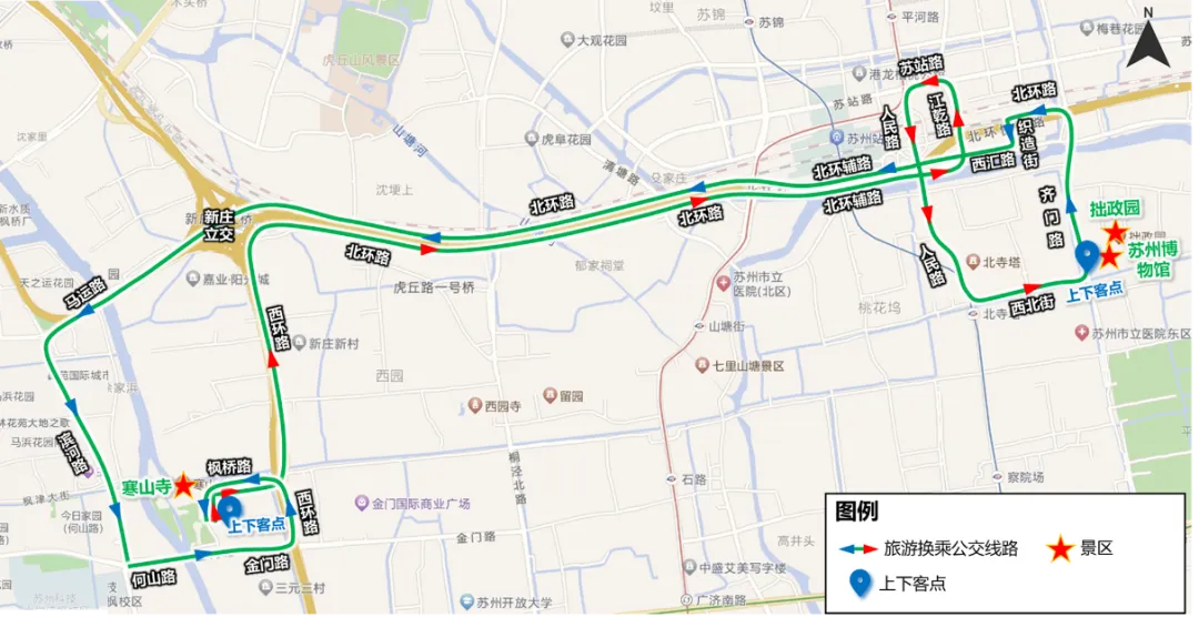 虎丘景区——寒山寺景区公交衔接示意图