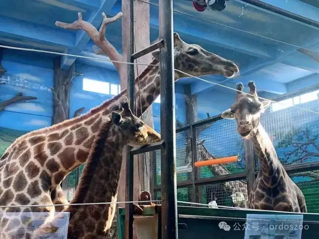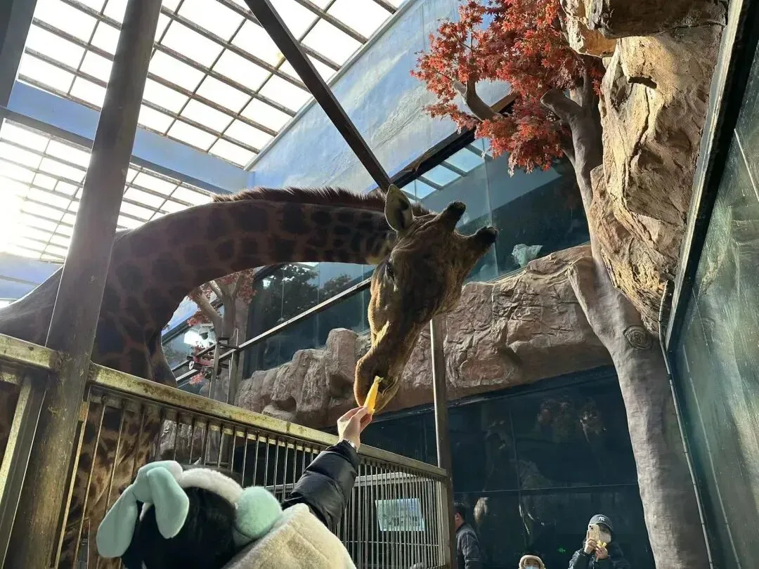 长颈鹿在恒温“阳光房”里慢悠悠咀嚼树叶