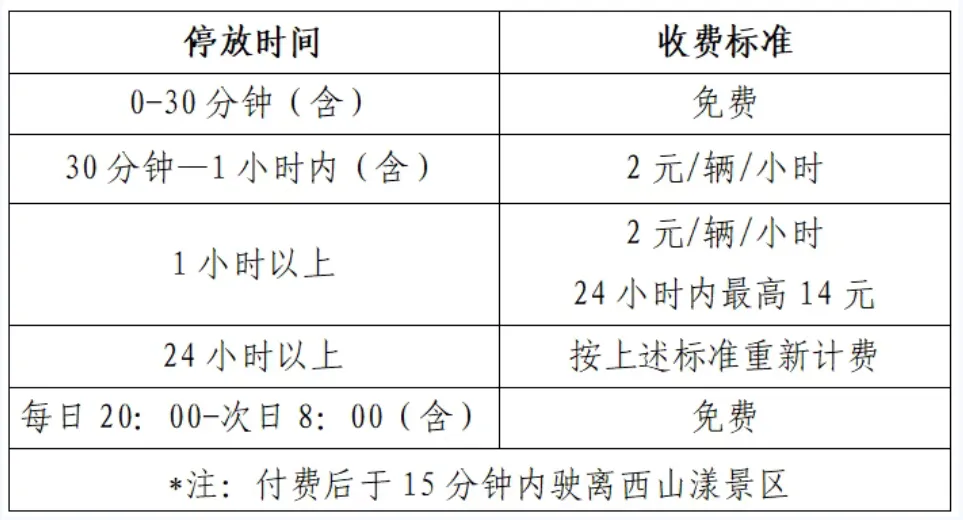 为进一步规范西山漾景区停车管理,优化停车资源配置,切实提升景区的整体运营效率和游客体验,经相关部门备案批准,西山漾景区将于2026年2月15日起实行新的停车收费标准。