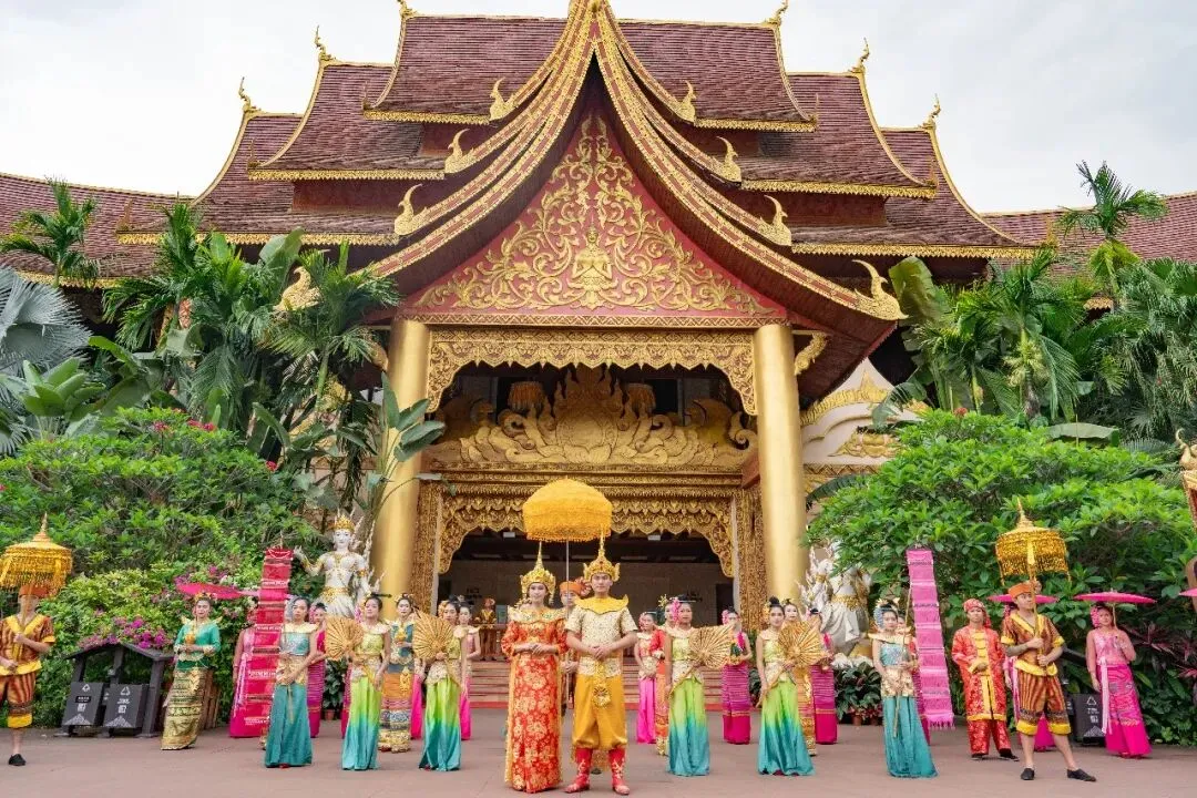 3.活动内容:游客身着景陇国服饰,学习古老的觐见礼仪,观看传统的傣族宫廷舞蹈。