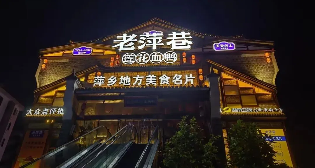傍晚华灯初上时,南正街灯笼次第亮起,红墙黛瓦映着暖光,随手拍都是古韵大片。待到晚餐时间,直奔 “老萍巷”,必点赣西特色莲花血鸭,鸭块裹着酱汁,配米饭能多吃两碗!饭后入住市区酒店,方便次日行程。