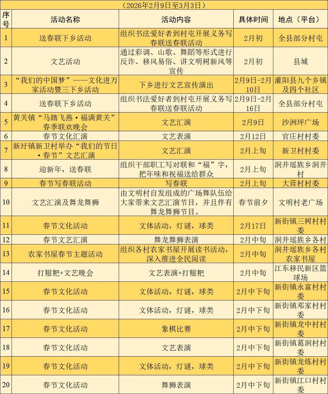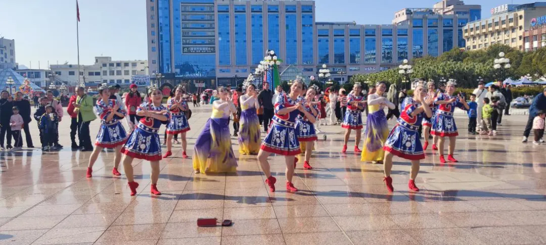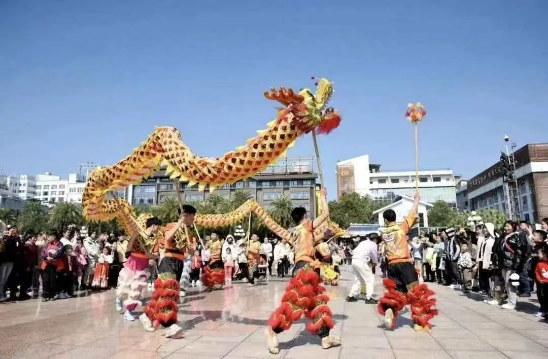在市中心广场举办2026年桂林市“我们的中国梦——文化进万家”暨新春广场文艺演出活动,活动内容包含龙狮表演、广场舞表演非洲鼓表演等,在全市上下营造欢乐祥和节日氛围。