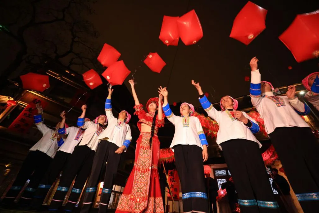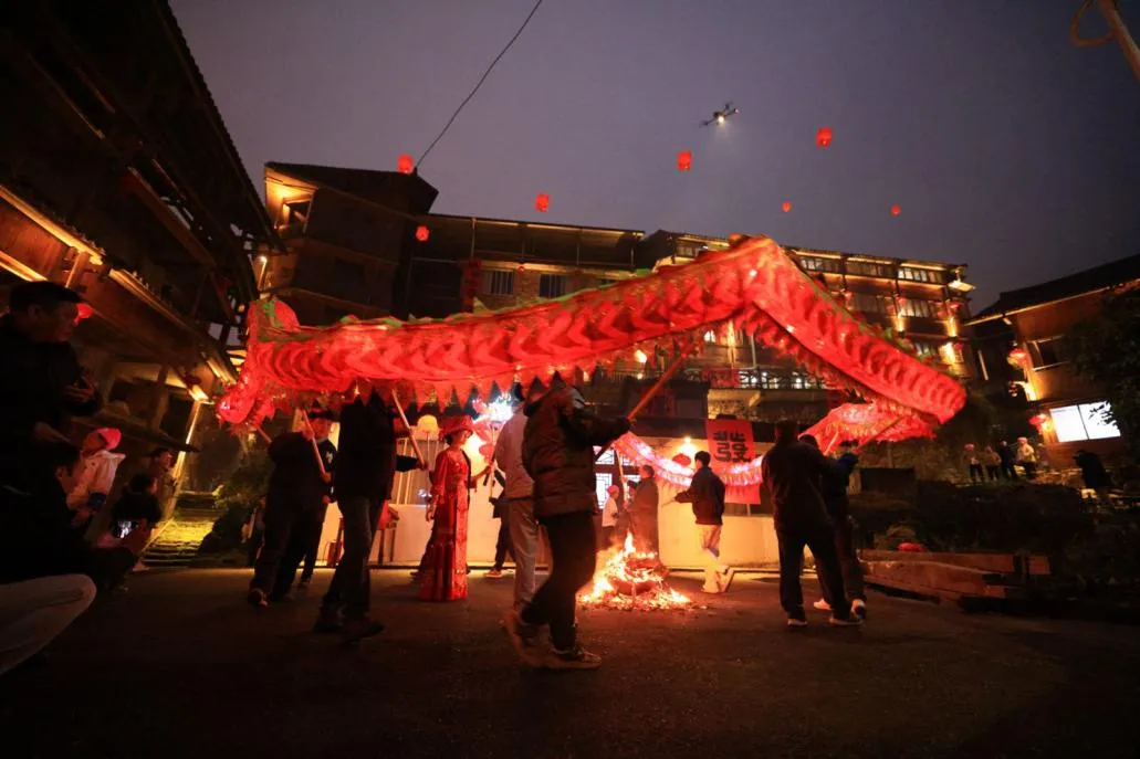 舞龙·舞狮·祈福灯·火把长龙,新春时节,广西龙脊梯田平安寨的“走红”习俗如期上演。村民们为明镜般的梯田系上鲜红绸带,让红绸如血脉蜿蜒于群山之间。这一古老仪式,既是对五谷丰登的直接祈愿,亦寄托着家户平平安安、生活红红火火的质朴向往,更承载着对国泰民安的深沉祝福。红绸连天接地,将农耕文明对土地的敬畏、个体对幸福的追求,与宏大的家国情怀紧密相连,在千年梯田上绘出一幅生生不息的文化图腾。为了让游客可以亲身体验,平安寨专门为游客呈现了热热闹闹的“走红仪式”,为游客送上走红运,平安幸福的祝愿。