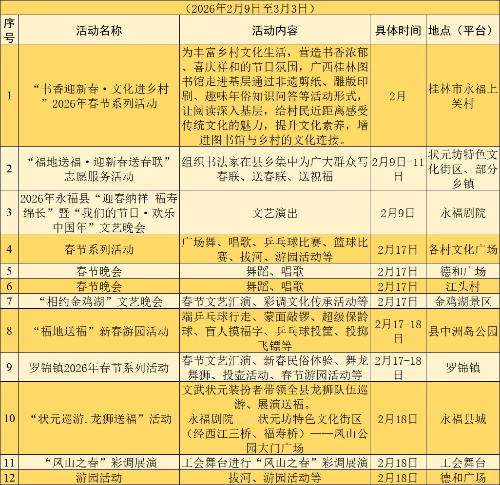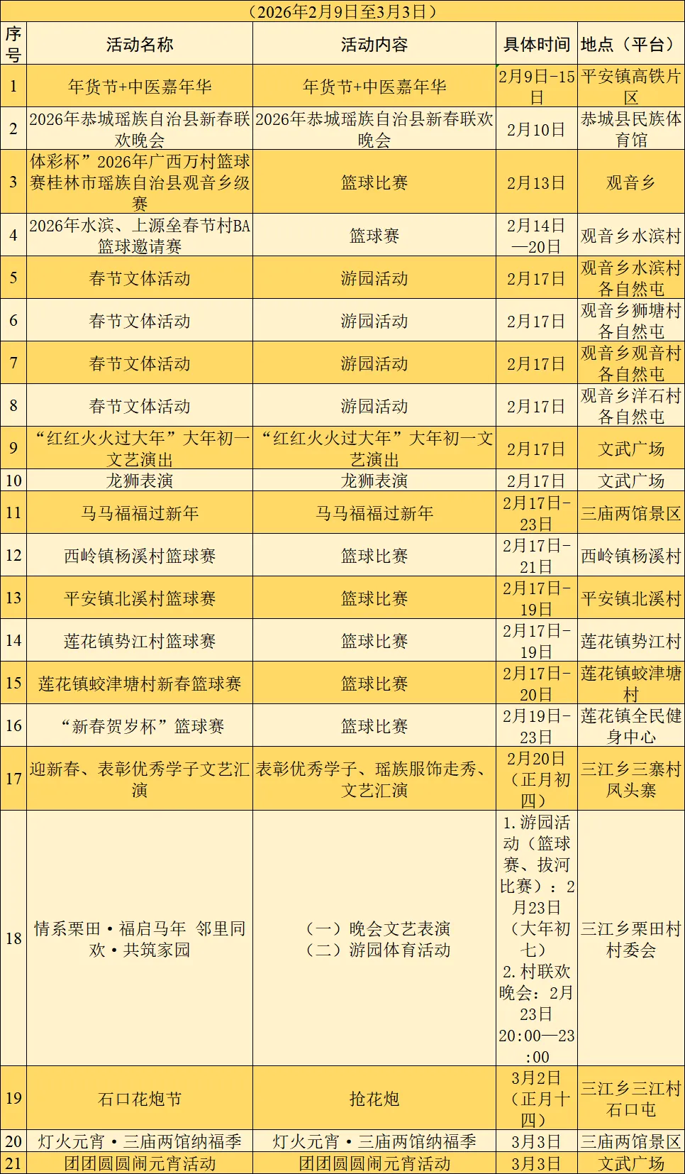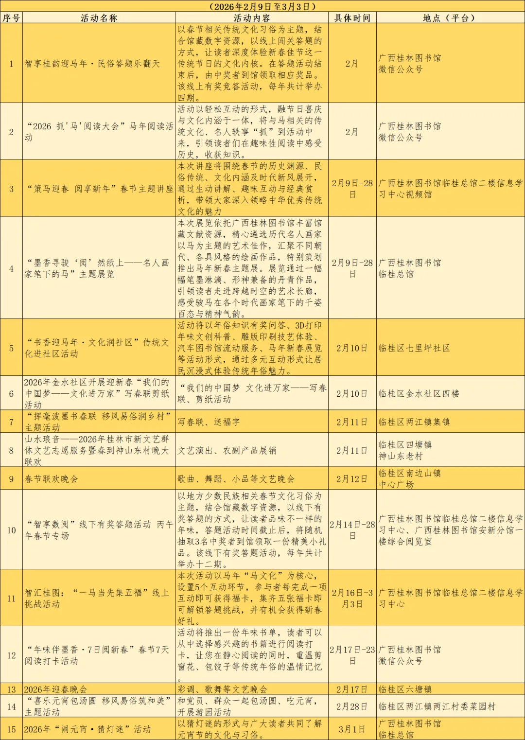 由桂林旅游股份有限公司承办的2026年桂林市春节文化旅游活动,将于农历大年初一(2月17日)19:00在桂林市中心城区隆重举行。