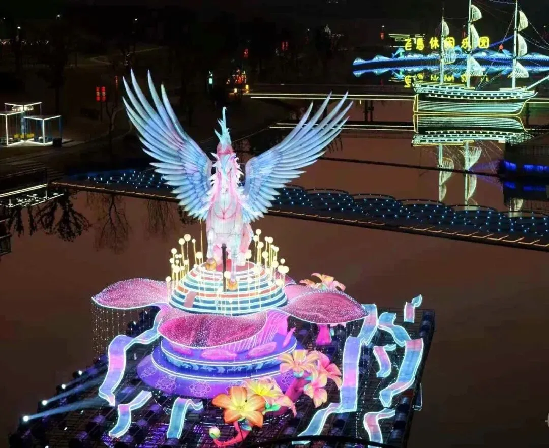 飞马千灯会是海澜集团为马年新春精心打造的特色活动活动横跨春节、元宵节两大传统节日将持续至3月8日,入园时间为每天16:00-23:00。为喜迎马年、回馈游客飞马水城景区还推出了三重专属福利。