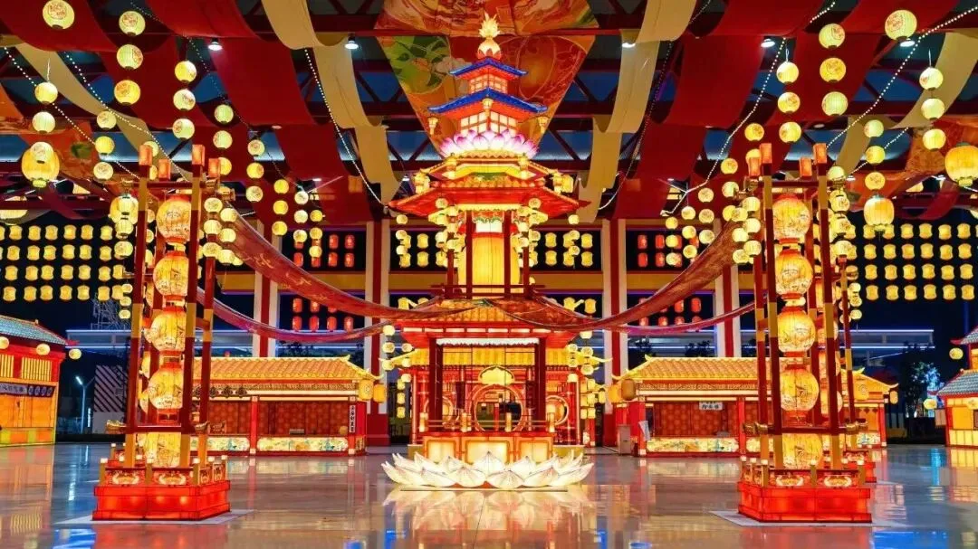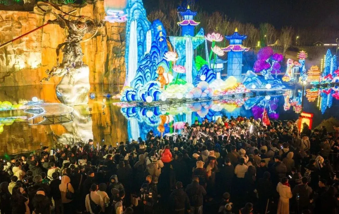 灯会以“梦回大唐”为主线,五大核心灯组场景,用光影语言重构盛唐气象。2米高的“踏浪神骏”流光溢彩,寓意马到成功、一马当先;11米高的“万国来朝”灯组让不少游客直呼震撼;40米长的水上灯景“诗绘大唐”吸引游客纷纷停留,与李白等文人大家隔空对话;“祈福树”灯组下,游客纷纷挂上祈福牌,许下新年美好祝愿;8米高的杨贵妃人像灯盏眉眼灵动,“云想衣裳花想容”的诗意具象化引得游客频频驻足;还有不少游客专程找到自己的生肖灯组合影留念……