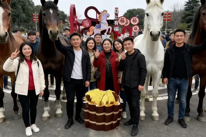 完成东门八骏合影、游客中心、马屁墙三处拍照打卡并分享朋友圈,还可领取 “祈愿福运贴纸” 一张,开启一整年的好彩头!