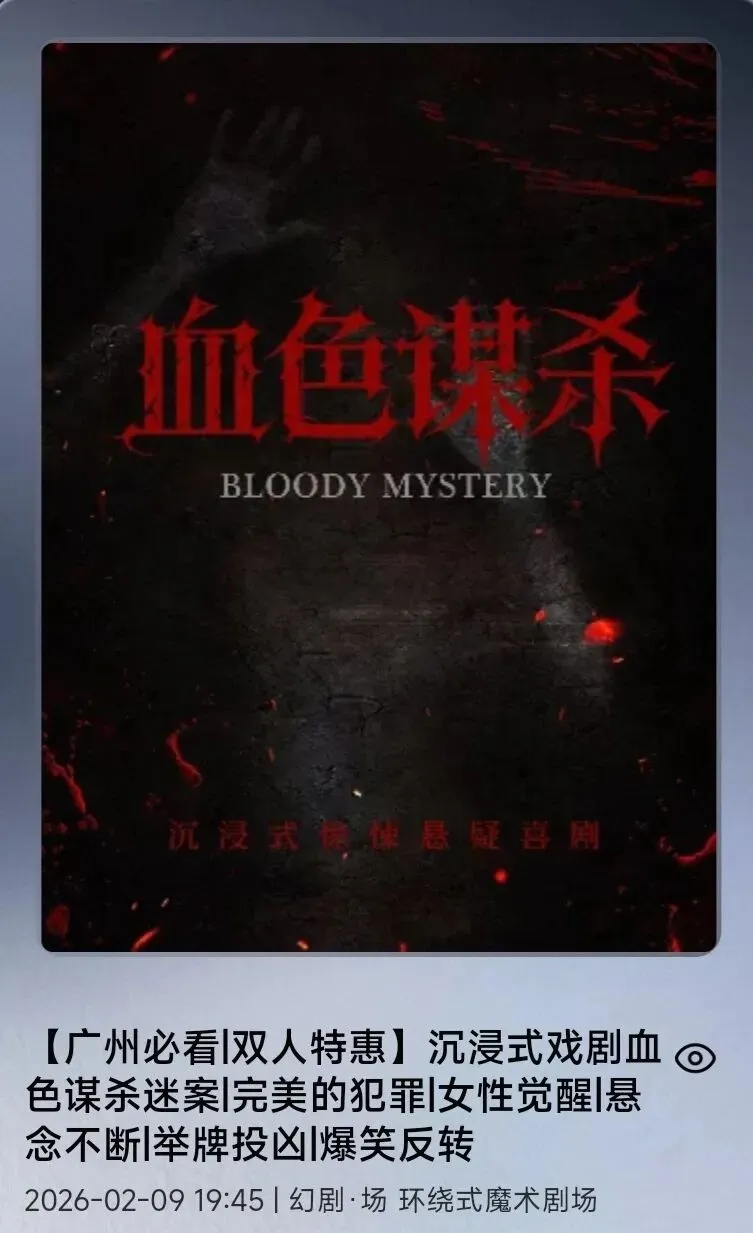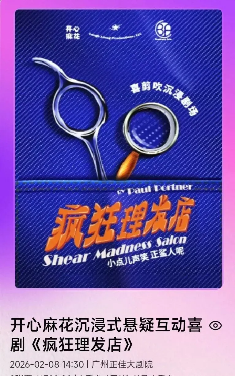 昨天去正佳大剧院看开心麻花的《疯狂理发师》,今天去万胜围看《血色谋杀》。