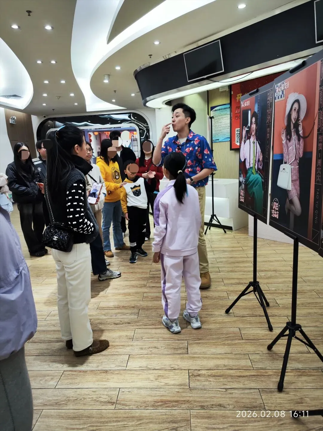 当时是中场休息,观众们在场外围绕着他叽叽喳喳的讨论剧情,贡献自己推理出来的线索。