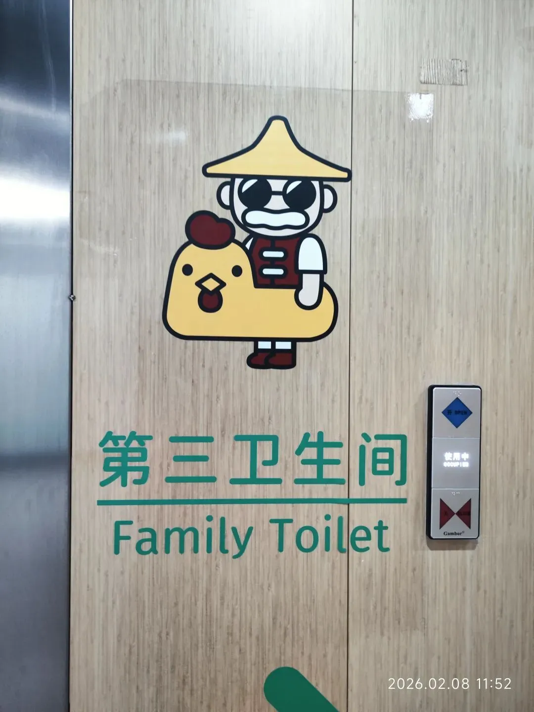 厕所图标,男的是包子(广式茶点),女的是木棉花(广州英雄花),第三卫生间……不好解读。