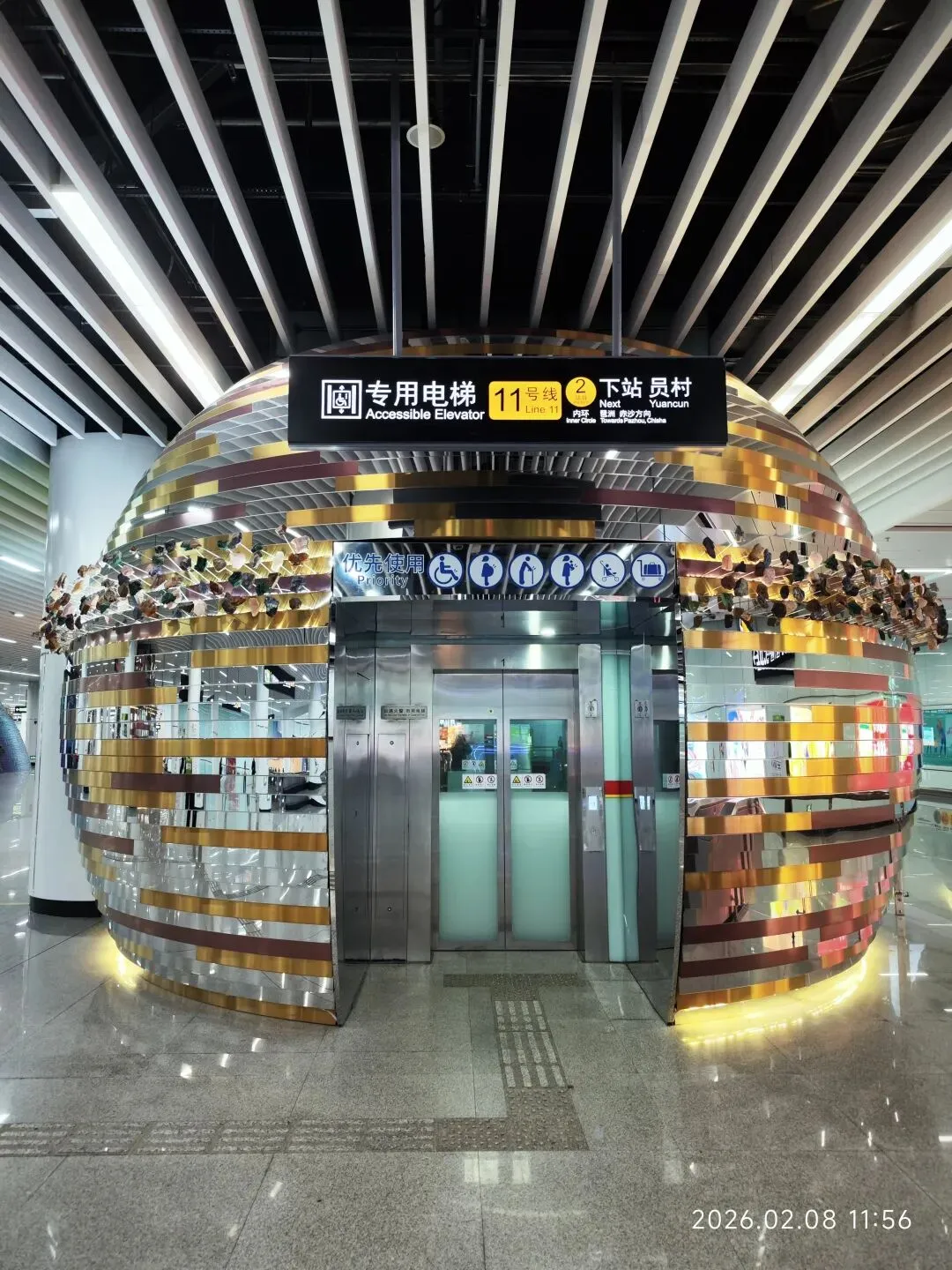 然后还有被女儿评价为“纯粹是有钱没处放”的电梯厅,不知道在表达什么具体的含义。