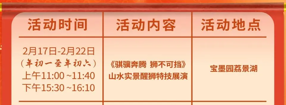 ↑特技展演春节期间活动时间表↑