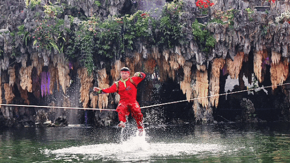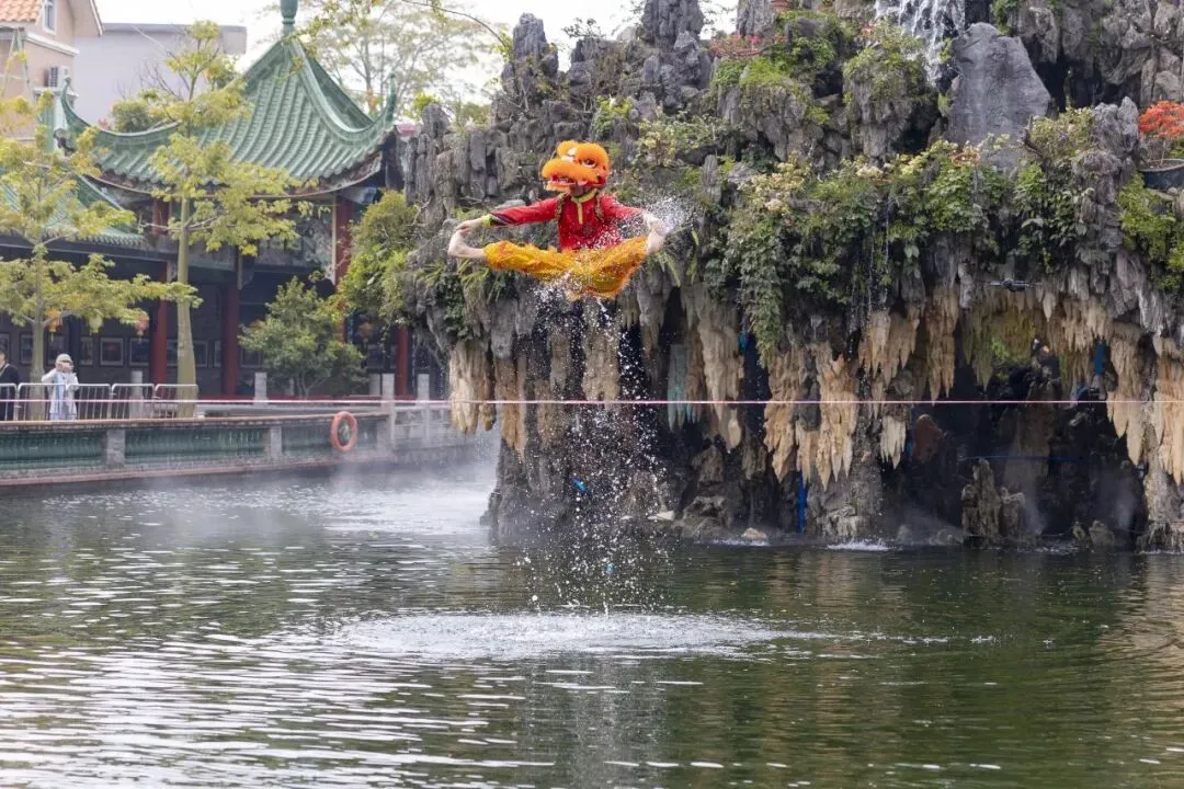 水上“轻功狮踏浪”的惊险奇观