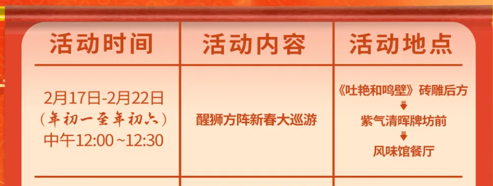 ↑巡游春节期间活动时间表↑