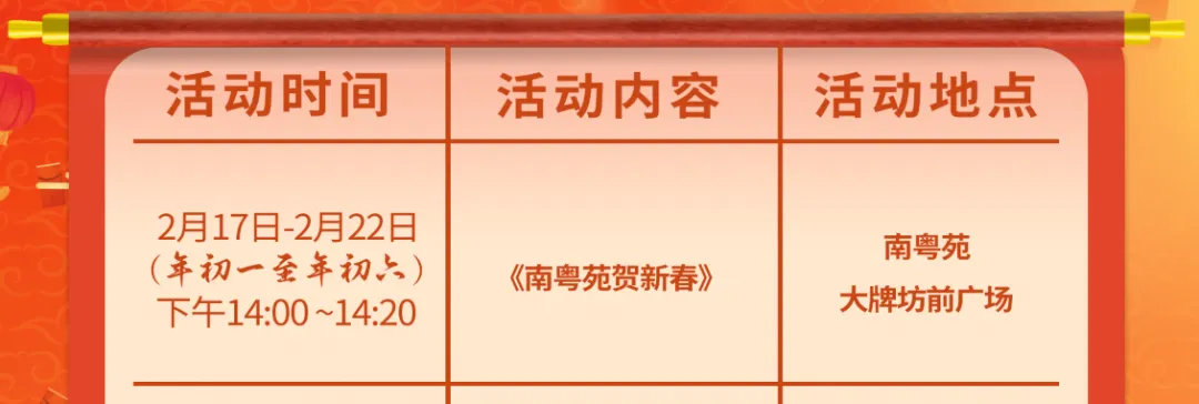 ↑南粤苑春节期间活动时间表↑