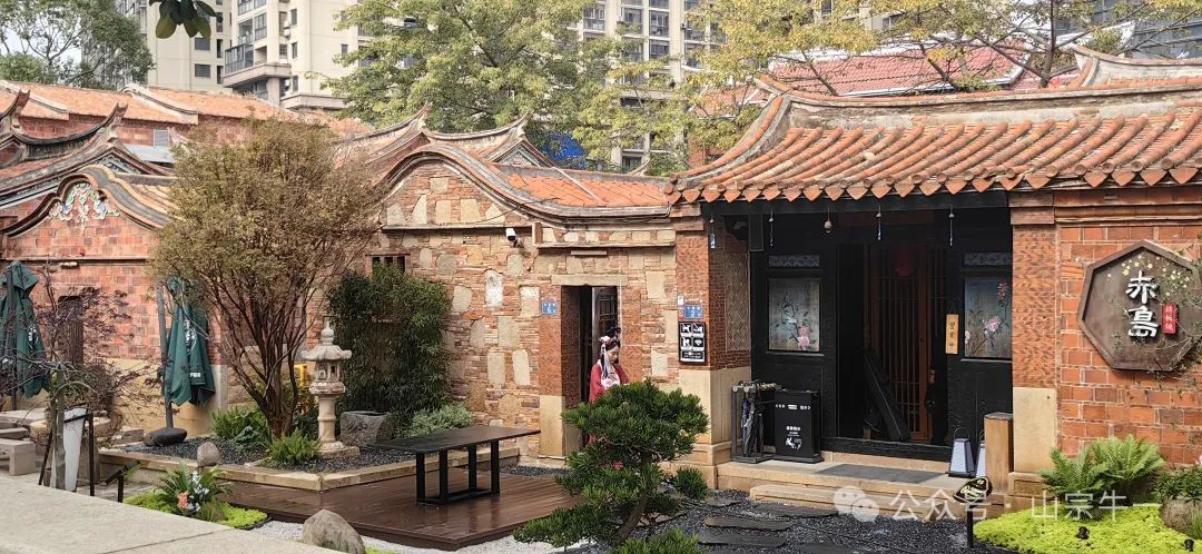 这片传统街区,红砖古厝就隐藏在繁华的高楼大厦间,它的旁边便是万达广场,现代与传统,就这样融合贯通在一起。