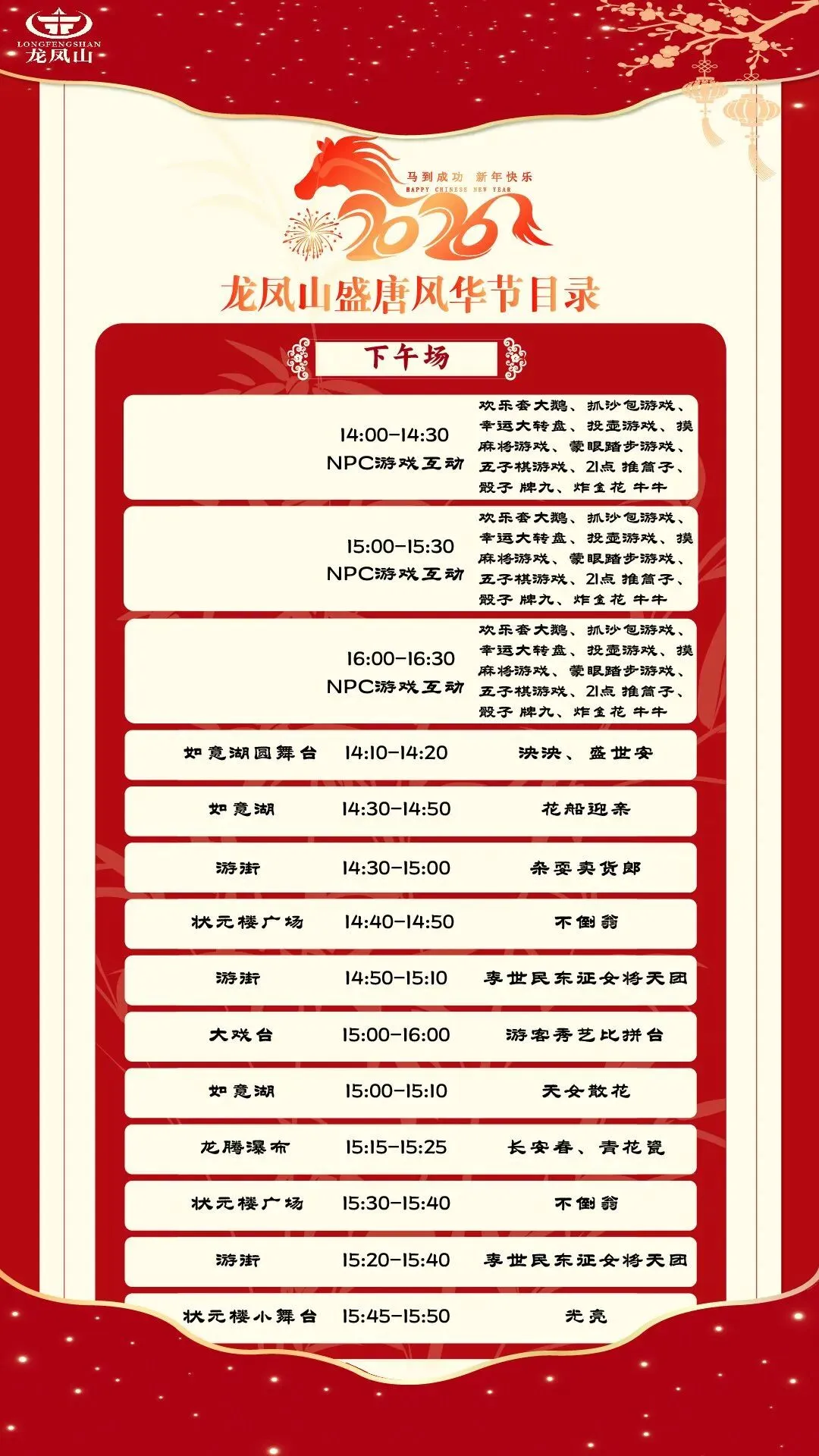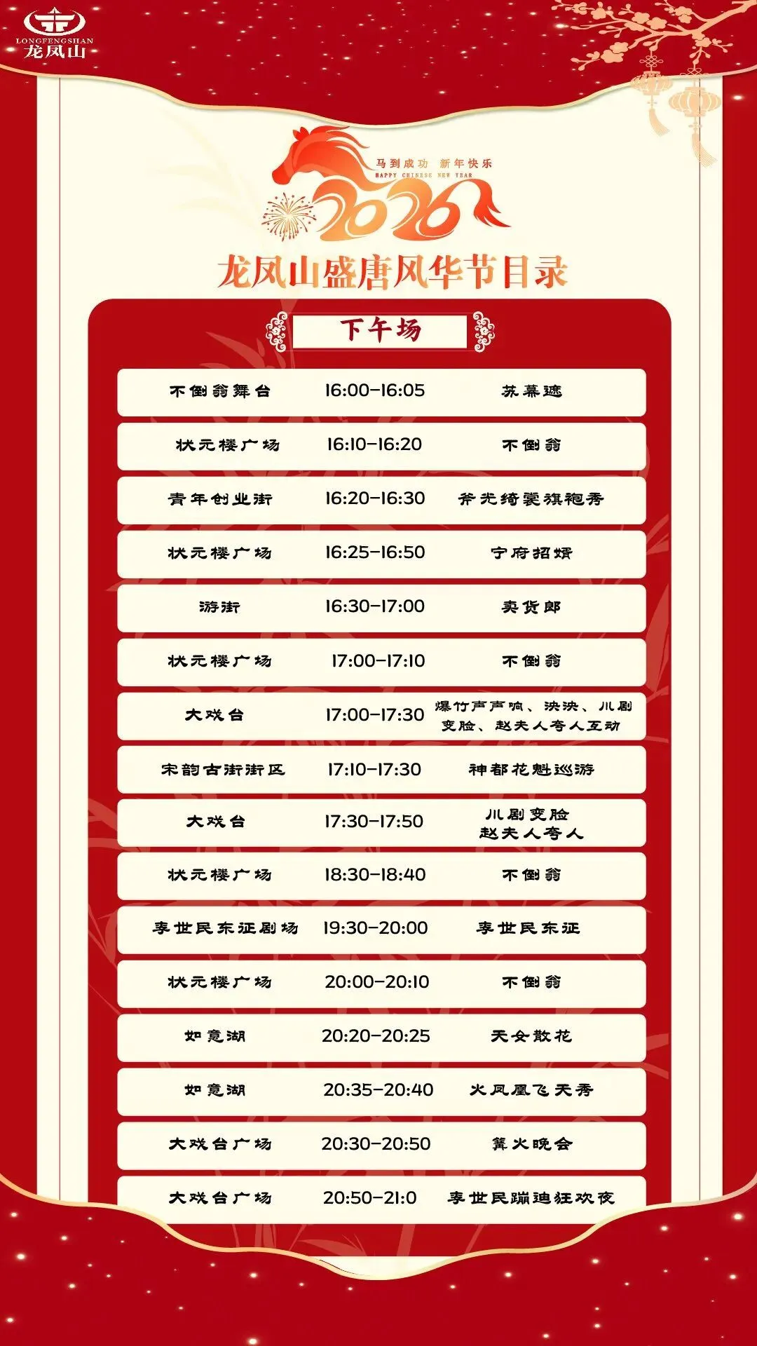 2026马年龙凤山景区节目单