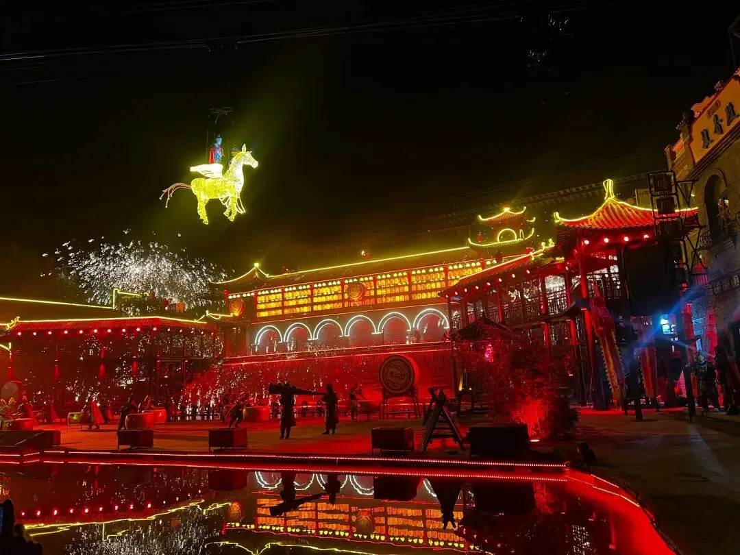 这场非遗大秀以大唐李世民东征洛阳的经典历史为核心,真实还原虎牢关之战、智取洛阳城、擒王世充,俘窦建德的恢弘史诗,将隋末唐初的金戈铁马、沙场争锋搬上龙凤山实景舞台。曾经四次接受中央电视台采访的打铁花团队领衔主演,千年非遗铁火技艺震撼加持,千度铁水凌空泼洒,铁花漫天如金霞映战旗,搭配沉浸式实景舞美、60多名专业演员的精彩演绎,声声战鼓震山河,步步阵仗显豪情,让您置身古战场,亲历李世民平定中原、奠定大唐基业的壮阔征程,感受有故事、有底蕴、有传承的非遗盛宴!