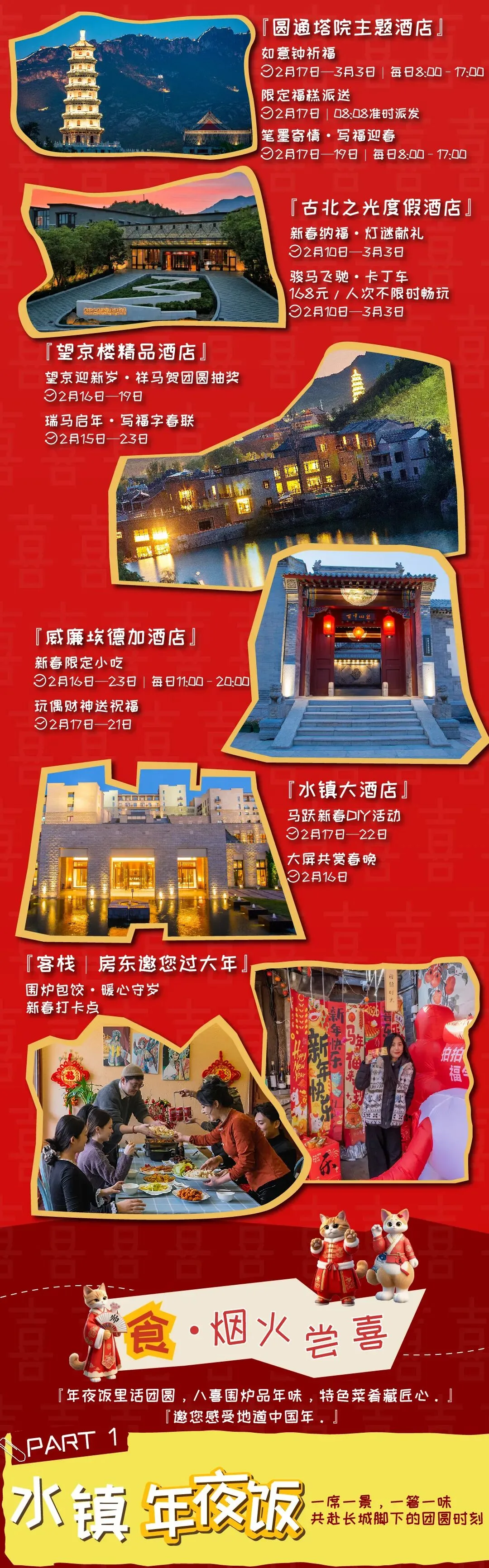 您现在的位置是:首页 > 旅游攻略 > 正文 旅游攻略 古北过大年水镇找喜事|春节游玩全攻略,沉浸式体验长城脚下的中国年! admin2026年02月09日 19:57:58旅游攻略13 古北过大年水镇找喜事|春节游玩全攻略,沉浸式体验长城脚下的中国年!长按图片抢购 转载请说明来源于"旅荐网",部分内容转载自网络,如有侵权请联系qlwl@foxmail.com删除 本文地址:https://www.15386.cn/post/99118.html 上一篇 白云山景区2026年春节期间矛盾纠纷化解服务通告 下一篇 【重要通知】武陵奇峡景区自2026年2月起(含春节期间)暂停营业,请勿跑空! 相关文章 杏花+雪山+冰川日南疆旅游路线攻略 从海口启程,解锁海南省环岛游玩路线攻略中的海南必去景点:三亚深度体验实录 从威海启程,解锁海南省环岛游玩路线攻略与海南必去景点的深度体验之旅 金石滩交通攻略|3 条旅游专线,不绕路不费腿 毕节市全域旅游攻略H5上线啦! 贵州4-5月旅游保姆级攻略,带你玩遍精华景点 你的“旅游搭子”已上线!告别攻略焦虑 洛阳旅游|四天三晚攻略求支招 厦门3-4月淡季旅游攻略|3天2晚不绕路 海南旅游攻略:阳光、沙滩与热带风情 发表评论 取消回复 评论列表 这篇文章还没有收到评论,赶紧来抢沙发吧~