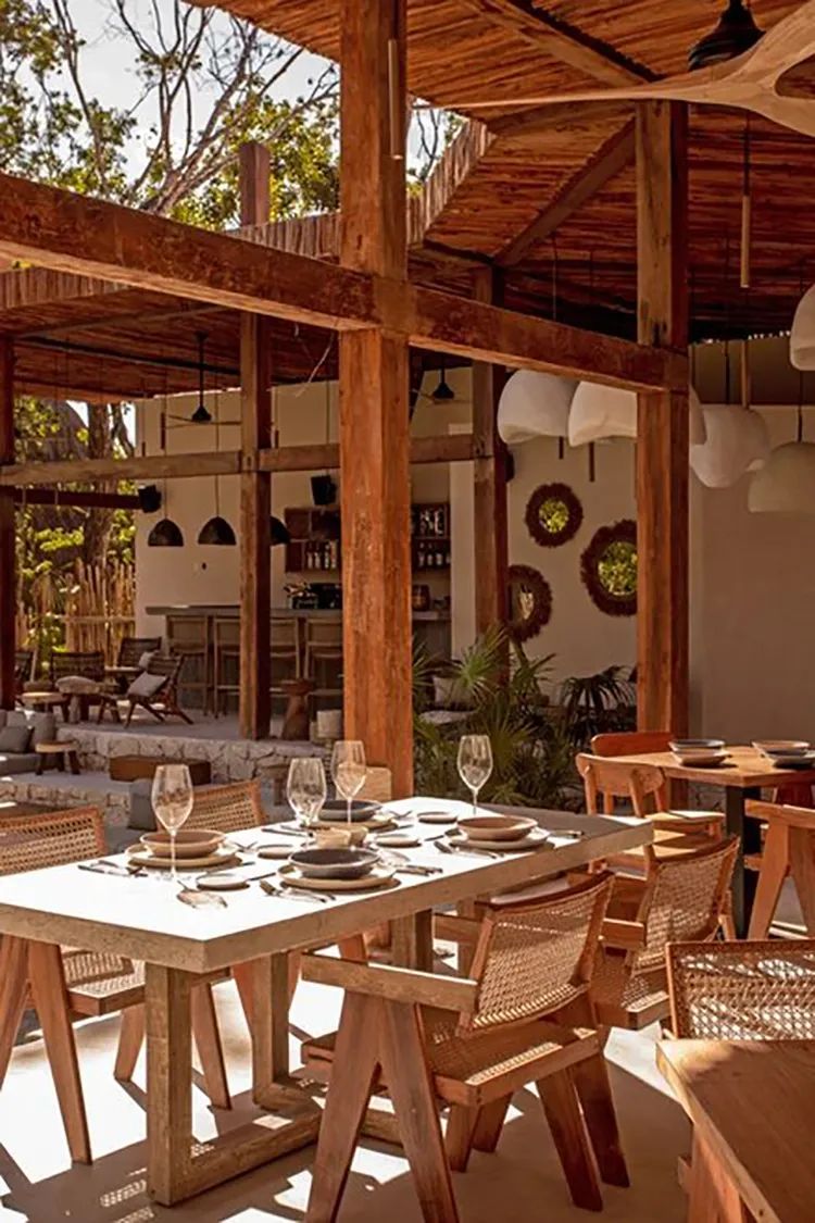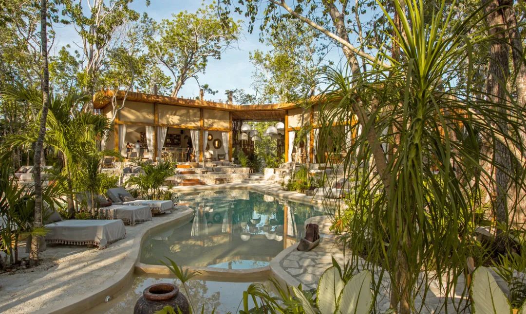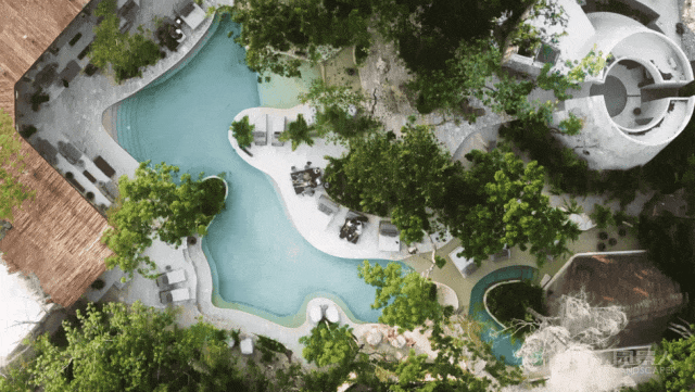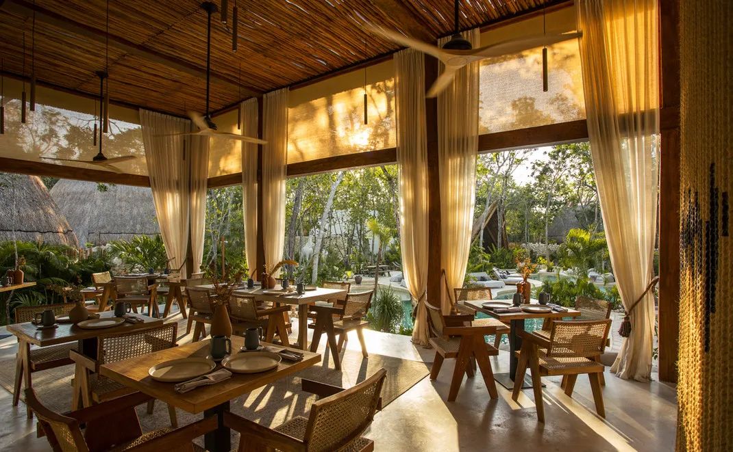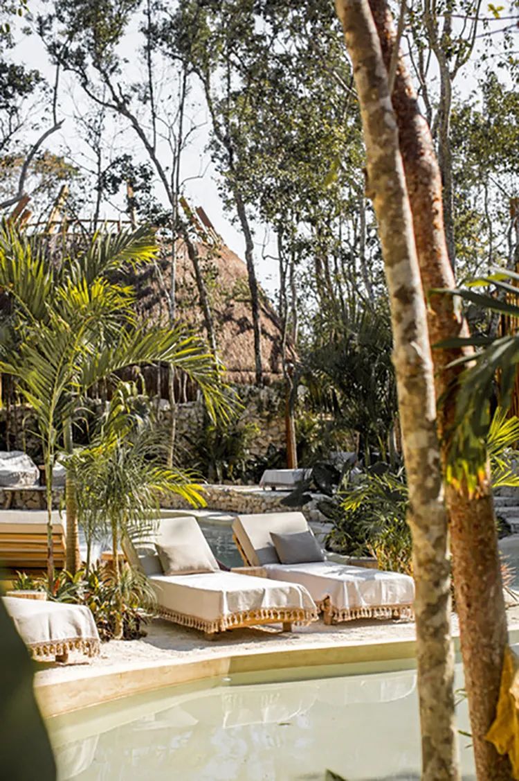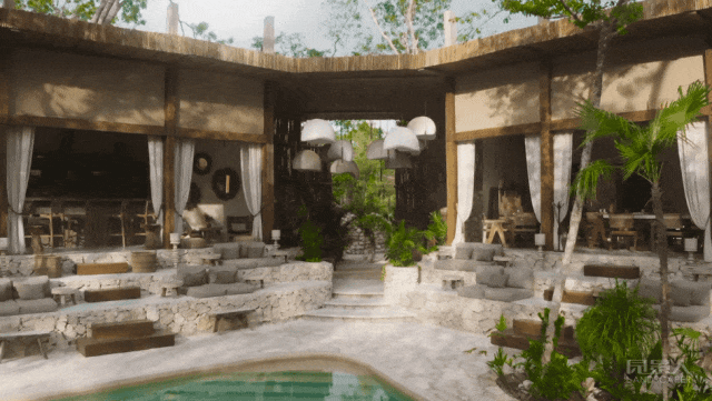 酒店建筑的目标是融入环境,成为玛雅丛林自然环境的一部分,并与它一起变老。空间的室内设计与该地区的手工艺技术相结合,例如chukum(植物树脂)、henequen、木工和所有类型的天然织物。