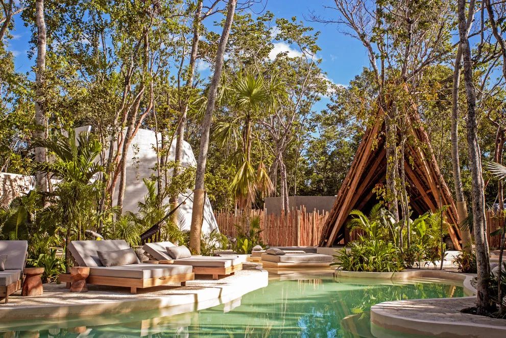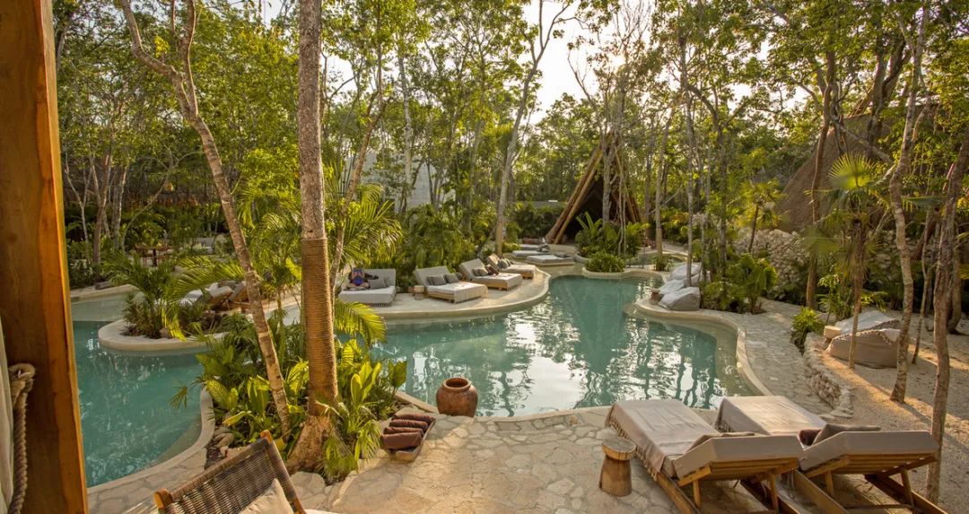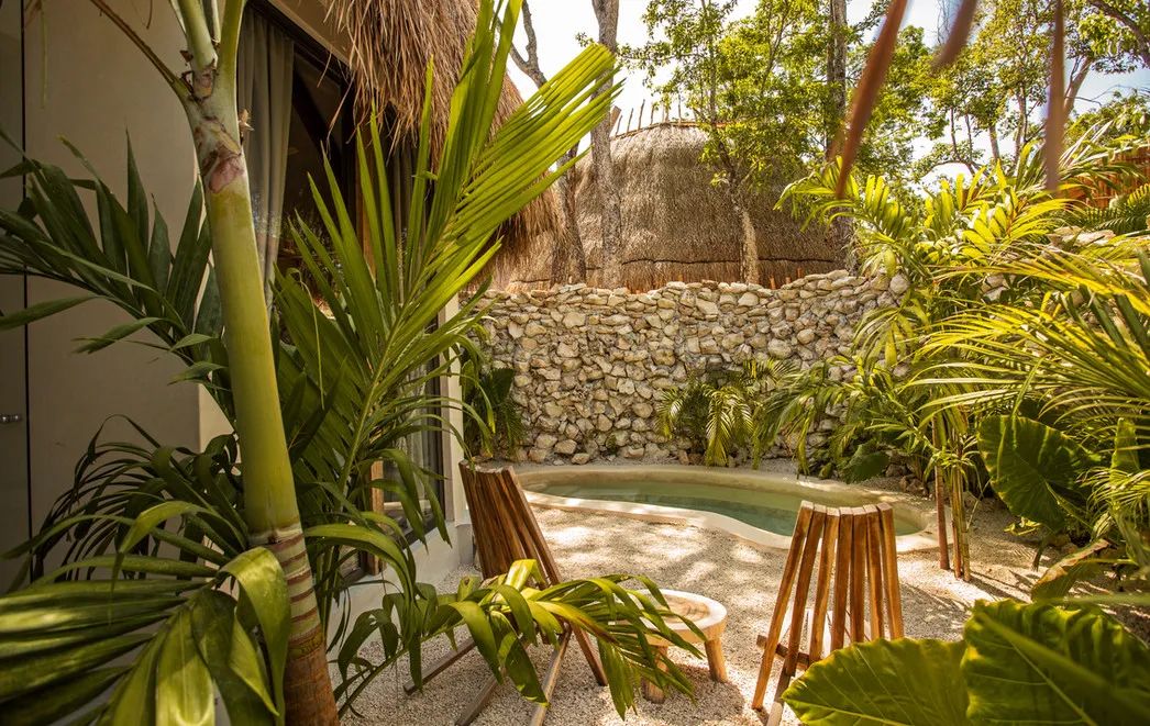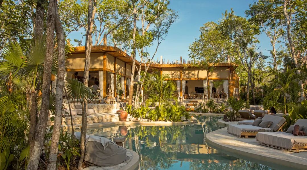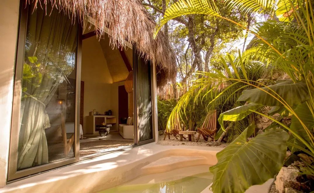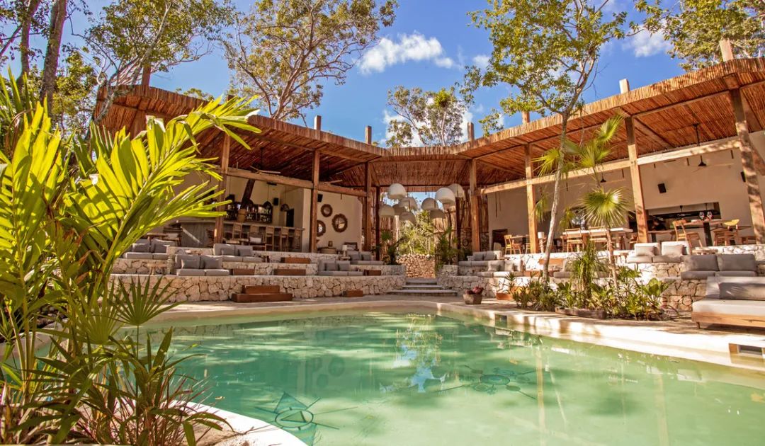 酒店建筑的目标是融入环境,成为玛雅丛林自然环境的一部分,并与它一起变老。空间的室内设计与该地区的手工艺技术相结合,例如chukum(植物树脂)、henequen、木工和所有类型的天然织物。