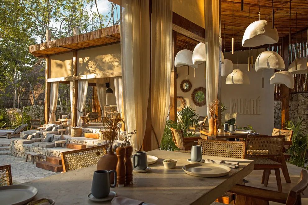 Muar é is a boutique hotel surrounded by lush Mayan forests, where guests can immerse themselves in a unique relaxation experience and enjoy the pleasure of interacting with nature. Explore Muar é and enter a luxurious oasis of bare feet, enjoying a profound space for rest and healing through health, sound, food, and warm hospitality.