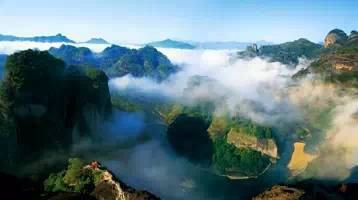 D3天:早餐后,乘坐旅游车前往【云窝】,后团友经茶洞,观看武夷第一壁——晒布岩;后登武夷山第一胜地【天游峰】(游览时间约3小时),此处三方环水,登其颠观云海,犹如天上游,九曲全景尽收眼底,观云窝,云窝以铁象岩为界,分上、下云窝。云窝背岩临水,地处武夷山精华地带,为武夷山首胜,此处因常有云窝飘渺而得名。前往茶农之家品武夷岩茶(不算店);后送南平市站乘D6241(14:47-17:41)、D2353(15:33-18:08)等返回泉州动车站!
