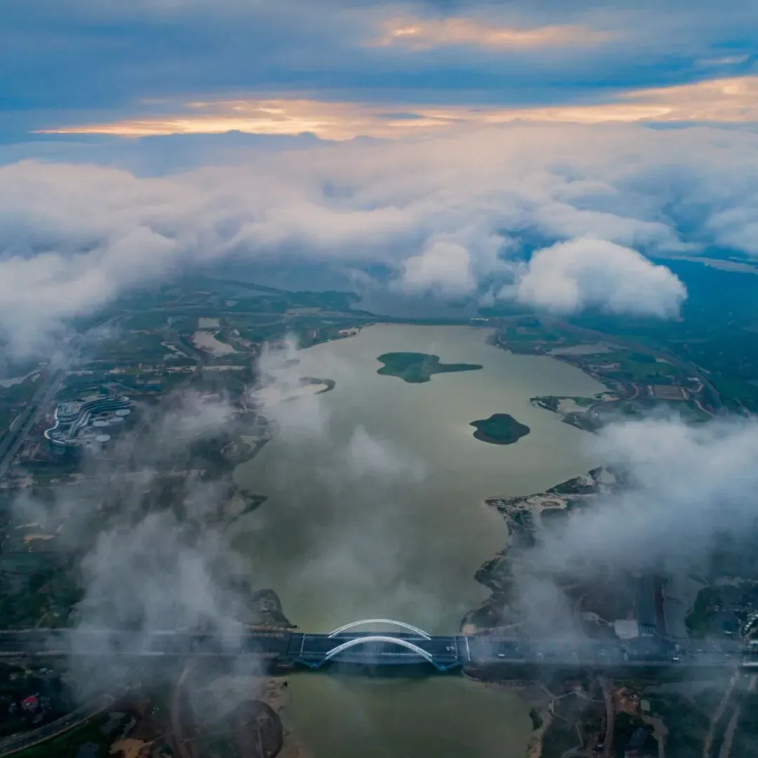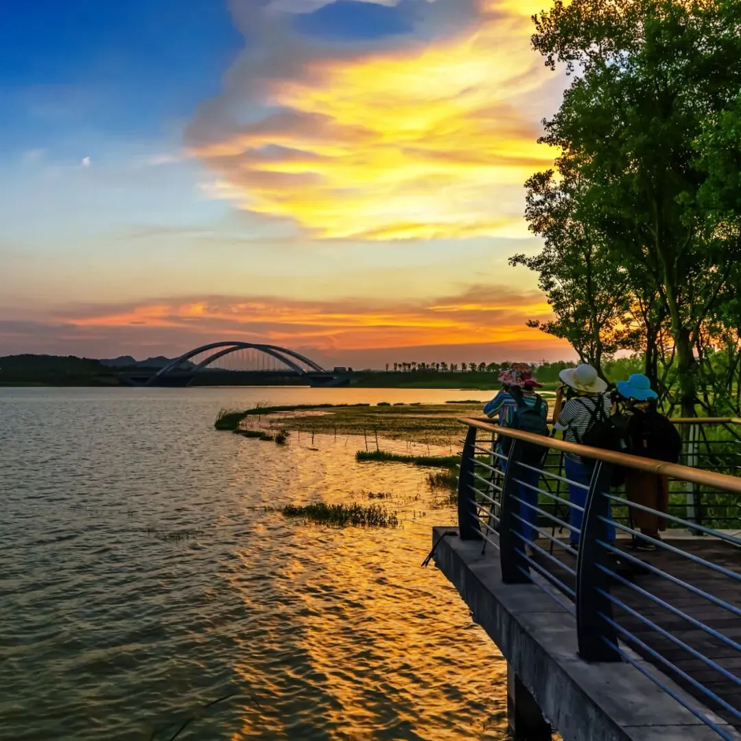 芳兰湖景区坐落于九江市科技城核心区域,东接鄱阳湖,总面积约3.2平方公里,其中水域面积约2平方公里,湿地面积约1.2平方公里。景区犹如一颗镶嵌于城市之中的绿色明珠,承担着“城市绿肺”与“生态屏障”的重要功能,是市民与游客亲近自然、感受生态之美的理想之地。