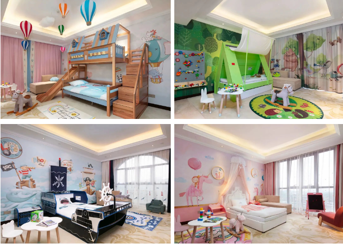 亲子套房共有多种主题,犹如步入在童话世界里。每间房内配置也是出乎意料的好:床、沙发、椅子……按照小朋友的身高比例特意为他们量身定制;