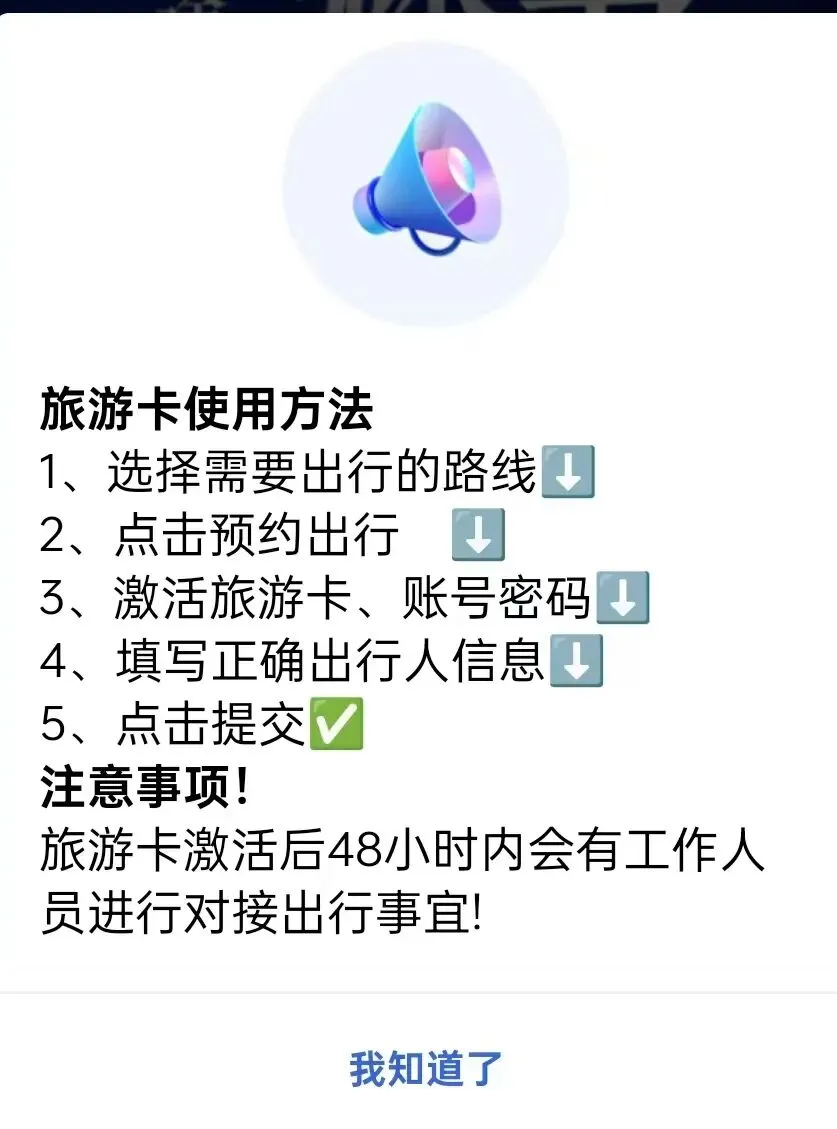 1,此卡仅限 2-6 人使用,扫码右下方小程序,输入兑换码即可报名行程。