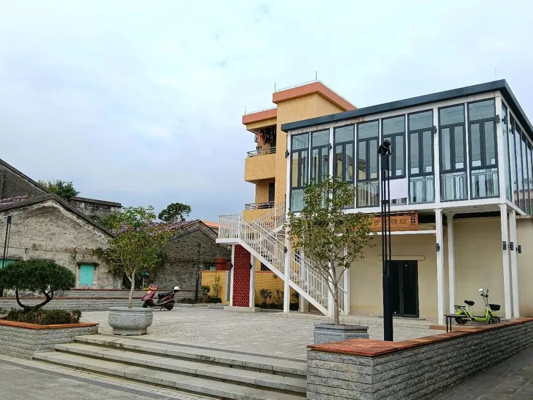 沿着桥头村委办公楼旁边的小路往里走,首先映入眼帘的是那座颇具特色的乡村驿站。由两层玻璃小房组成,简洁、精致、颇具乡村文化特色。